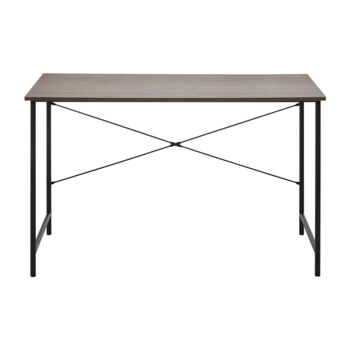 The Blake desk is ideal for a home office or assisting with homeschooling. The rectangular dark oak effect, wooden top sits neatly upon a black metal frame which is minimal and subtly industrial in style. A cross pattern structure adds stability and detail to the desk. Sleek and sturdy, this dark oak effect desk is a stylish addition to the workplace or home.