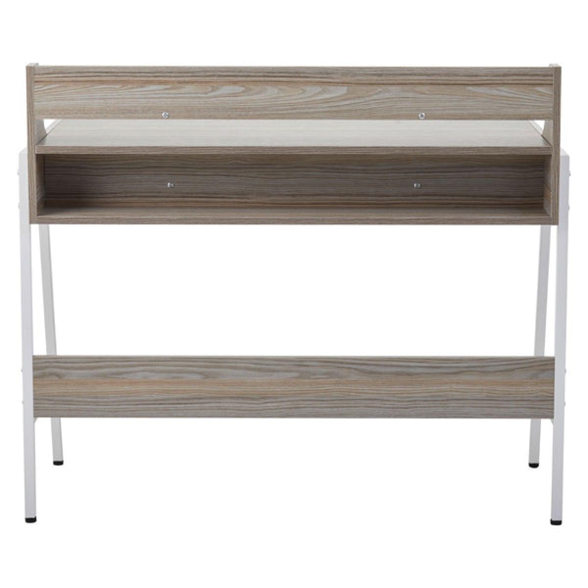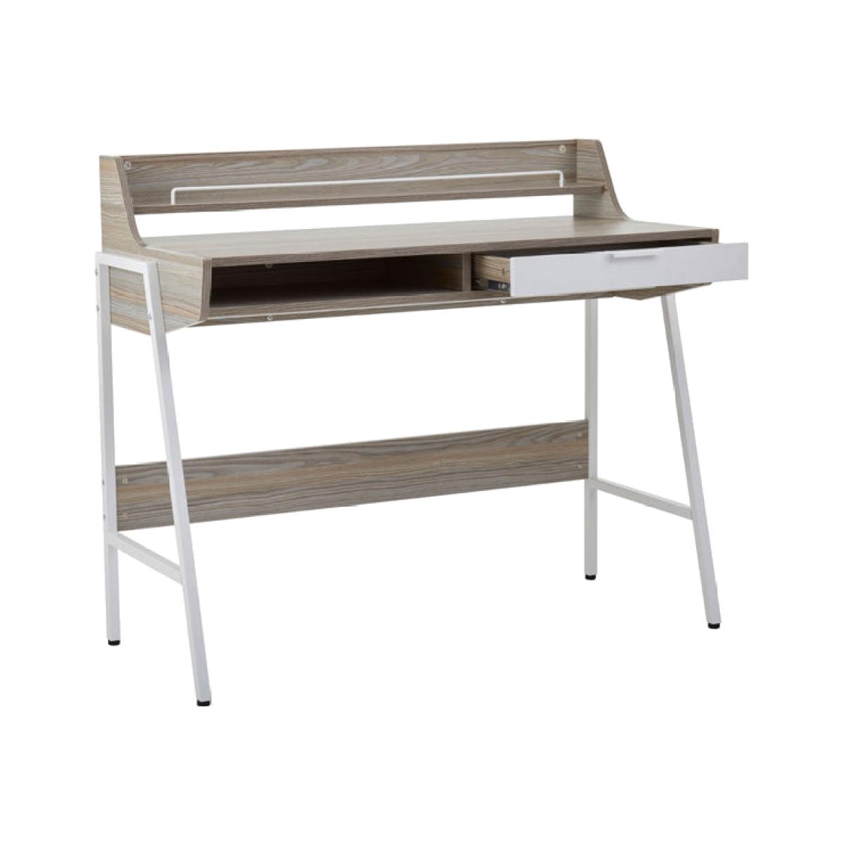 I love this desk's blend of light oak veneer with subtle white accents, which keeps it fresh and versatile. It works particularly well in modern or Scandinavian-inspired interiors, adding warmth without overwhelming the space. Practical styling tips include pairing it with minimal accessories-think sleek desk organisers or a simple desk lamp-to keep the clean lines intact. It also pairs nicely with soft textiles or greenery to soften the overall look and create an inviting workspace. Its compact, functional design makes it a great choice for smaller rooms or home offices looking for a stylish yet practical solution.