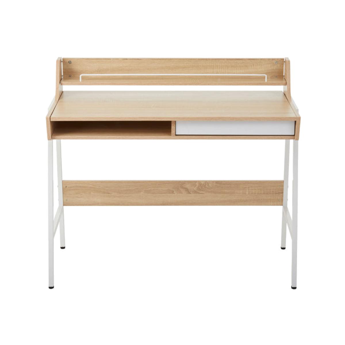 The Bristol desk is idyllic for office or assisting with homeschooling. Supported by a sleek metal frame in white powder coating finish, the rectangular top of this table features natural oak veneering effect provided by a drawer in an off-white finish. Sporting simplicity with practicality, this desk is well-suited to keep the space organised and clutter-free.