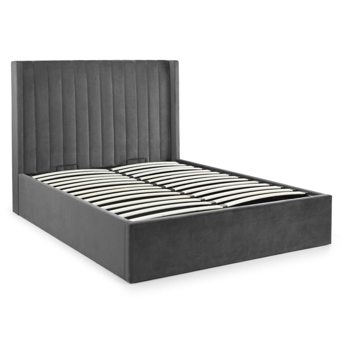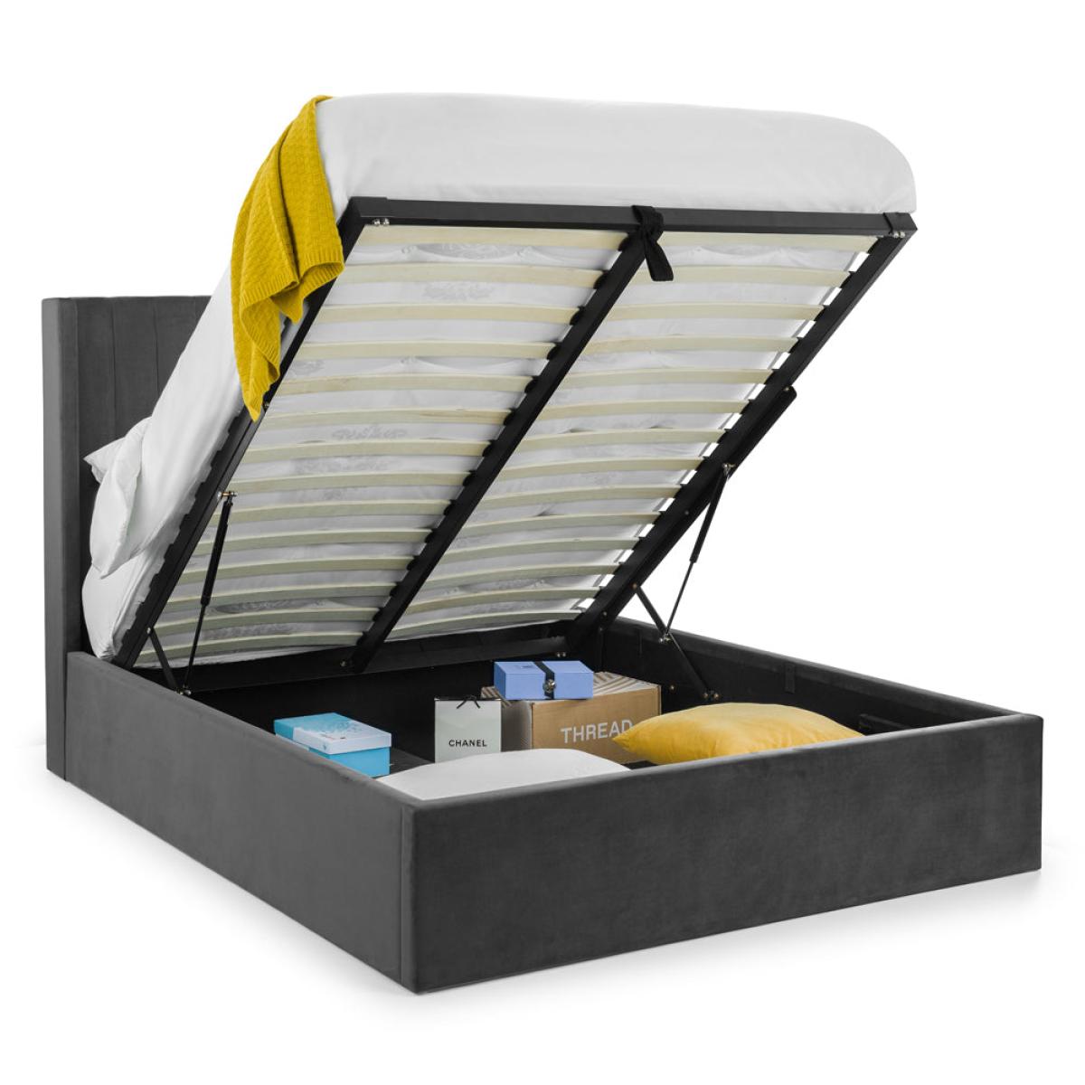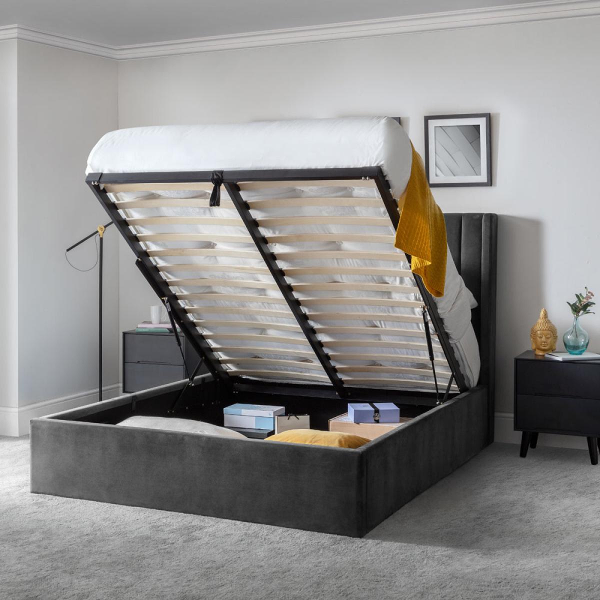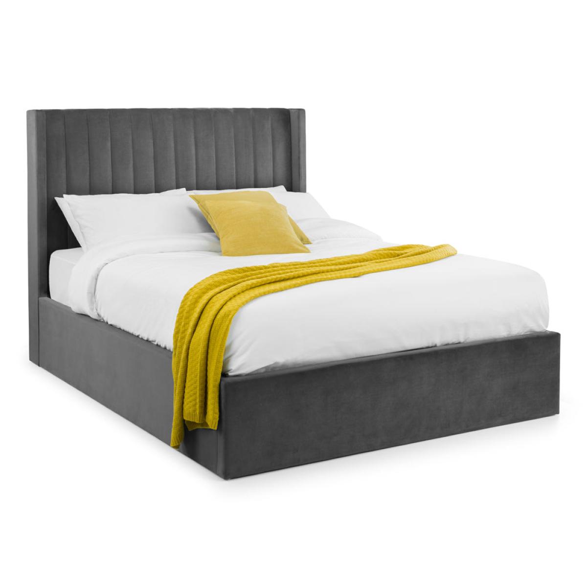 The Olivia's Storage Bed is designed with a luxurious scalloped headboard that would look perfect in various bedroom décor settings, alongside an ottoman base, which is perfect for those that need to maximise storage space in their bedroom. This stunning bed is both classy and practical – perfect for modern homes. Available in a gorgeous teal or elegant grey. Dimensions: H: 131 x W: 149 x D: 210 cm Materials: Hardwood Frame With Foam And Fabric Upholstery Assembly Required:Yes Care Instructions:Wipe with a clean damp cloth. Avoid household cleaners & abrasives