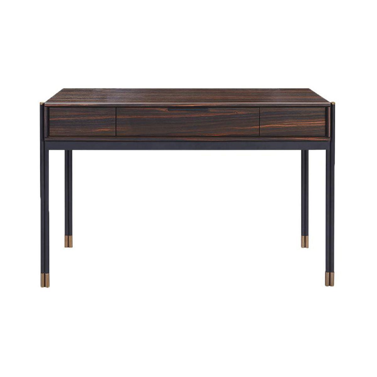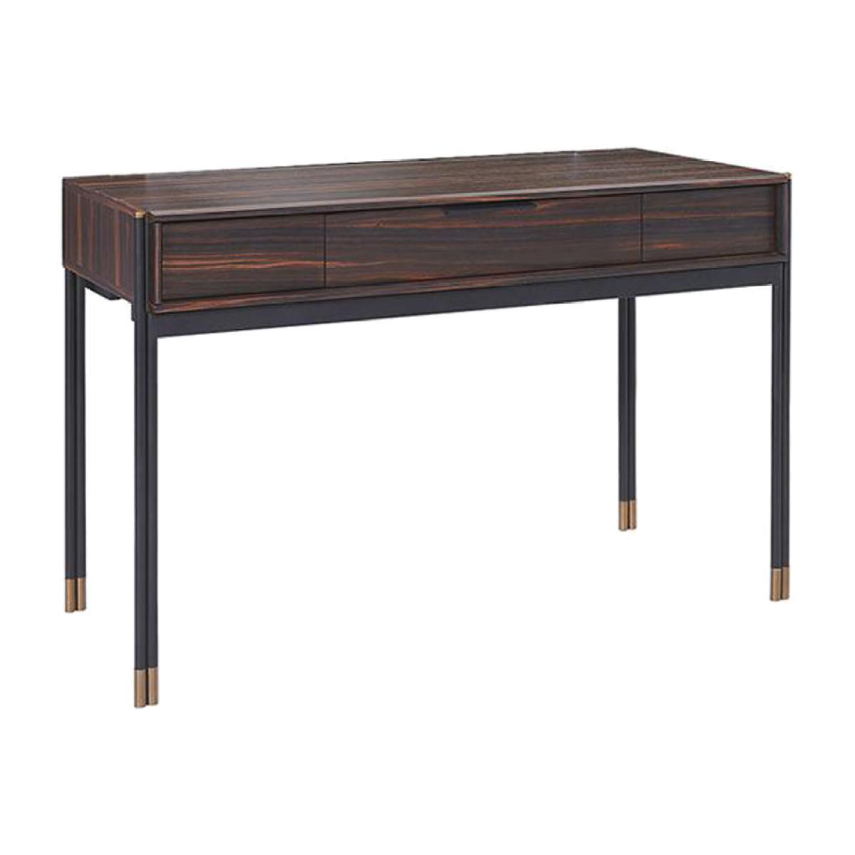 This lovely desk is the perfect addition to your study, living room or home office. It has been created using Ebony Veneer and features threads of lighter brown to give it a warm, earthy feel that speaks of tradition and quality. The legs of the desk have been completed using gold accents, which adds to the classic sophistication of the piece. This attractive desk features three separate drawers, so you will have lots of room to put your important paperwork or the files you are currently working on. Team with a chair of your choice to complete this beautiful style. *Moot Trading Ltd is not a lender and acts only as an introducer. The credit product is provided by Klarna Bank AB (publ). Credit is only available to permanent UK residents aged 18 and over, subject to status. Terms and conditions apply. Please note that the following products are not regulated by the FCA: Pay in 30 days and Pay in 3 instalments. Read More.