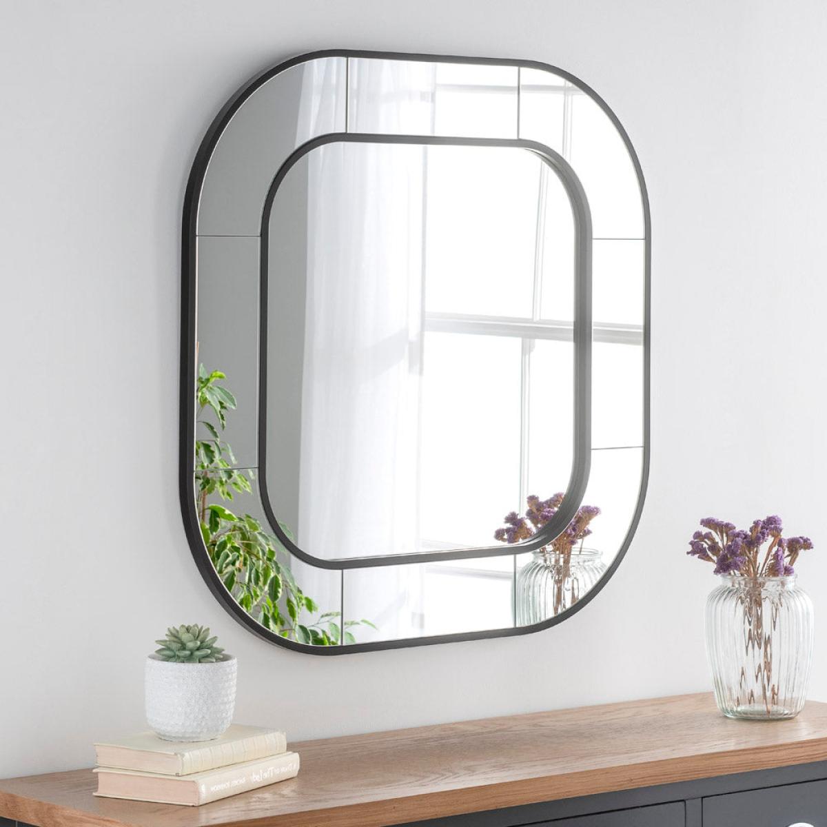 Contemporary radius mirror with beautiful soft curved detail corners. High quality processed mirror glass that offers a crisp reflection. The frame itself is constructed from wood and has a solid wooden backing. Hand made and finished by master mirror makers with decades of knowledge passed through generations. Finished in a sumptuous black colour to give the extra wow factor a truly classy looking mirror that would enhance the interior. Made in the UK complete with hanging hooks attached to the back ready for hanging. Dimensions: H: 80 x W: 80 x D: 2 cm Materials: Wood/MDF/Glass. Orientation:Portrait or Landscape Fixing Type: Hanging Hooks Care Instructions:Wipe mirror glass clean with damp non-abrasive cloth. Wipe frame clean with no abrasive dry cloth