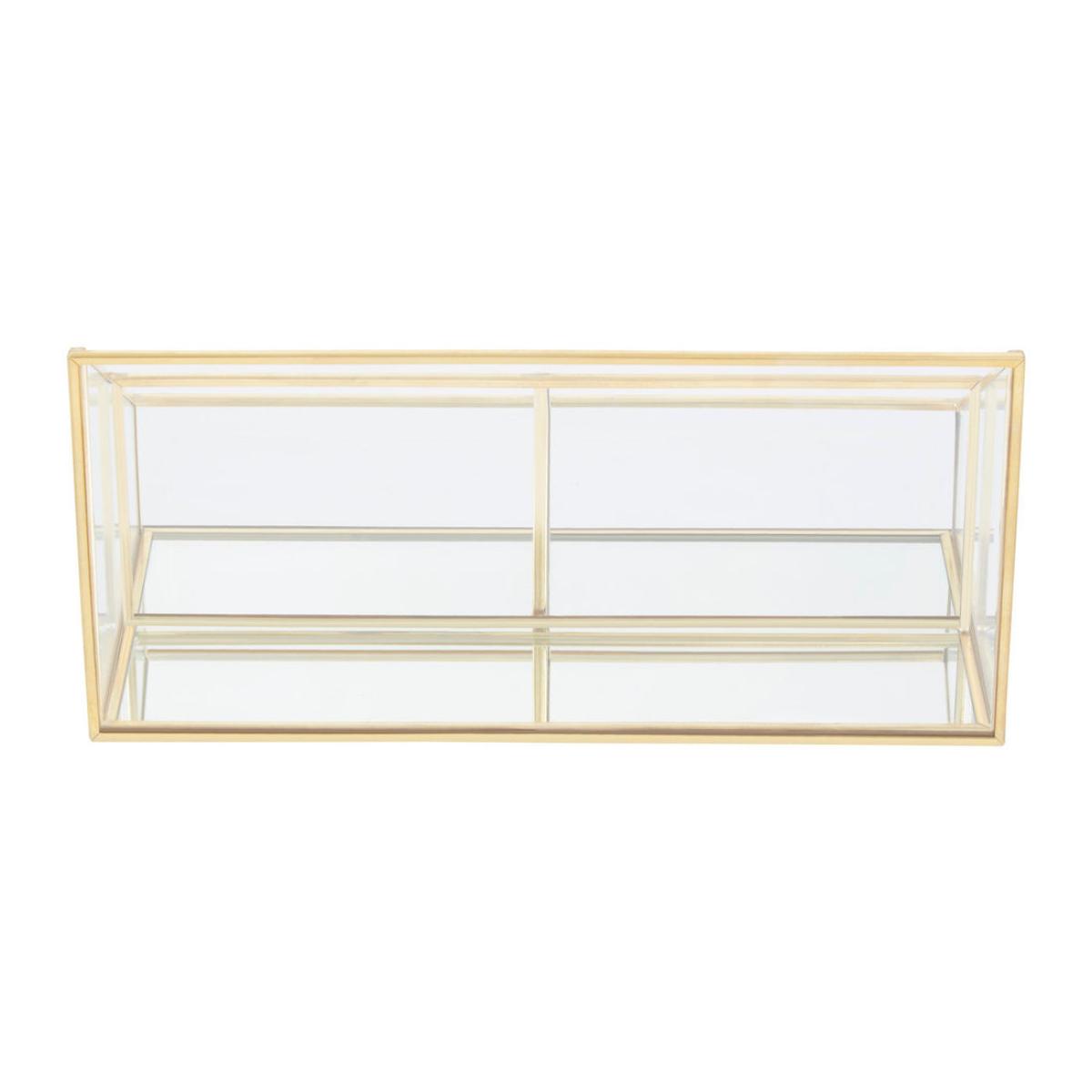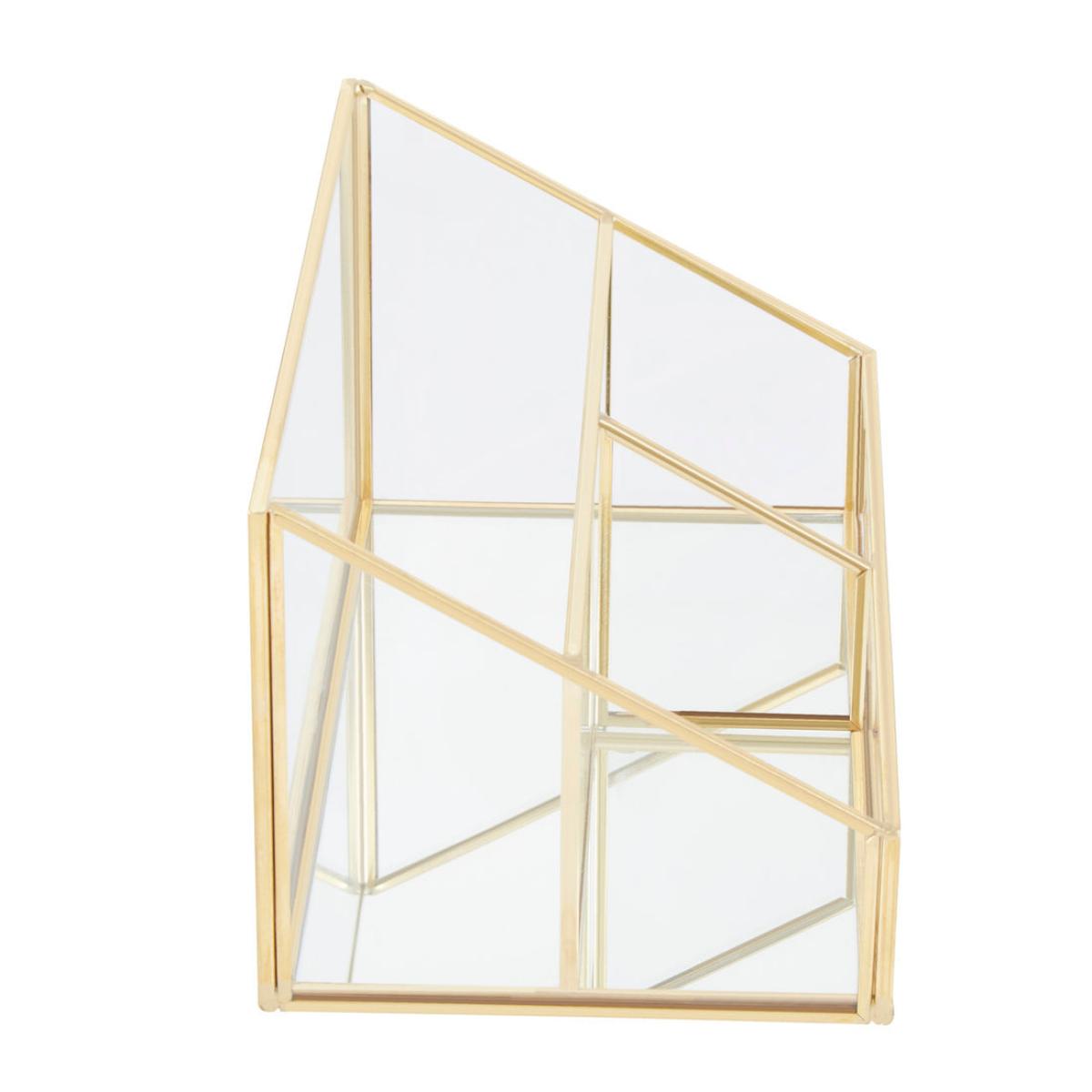 This clear glasss makeup organiser has a sturdy frame in the warm metallic finish with a mirror-base. A stylish storage solution for dressing table or bathroom to keep the space decluttered. Dimensions: H: 10 x W: 22 x D: 12 cm Materials: Glass Assembly Required: No Care Instructions:Wipe with a dry cloth