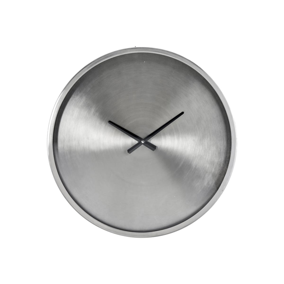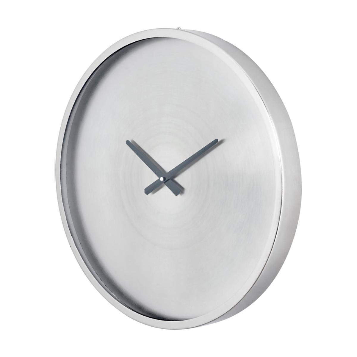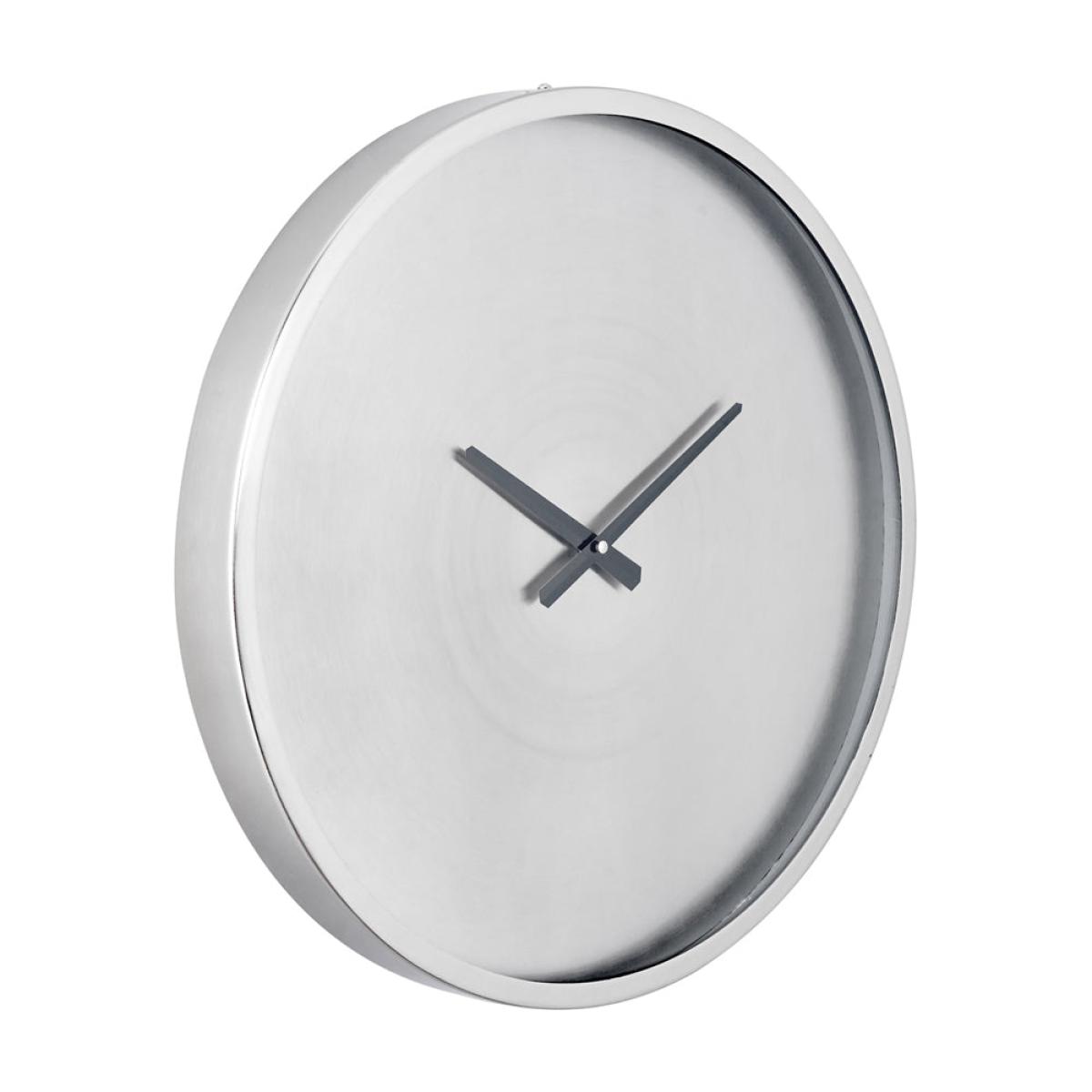 This simple clock is finished in brushed nickel giving a modern and sleek look. This stunning, circular wall clock is the epitome of contemporary design.