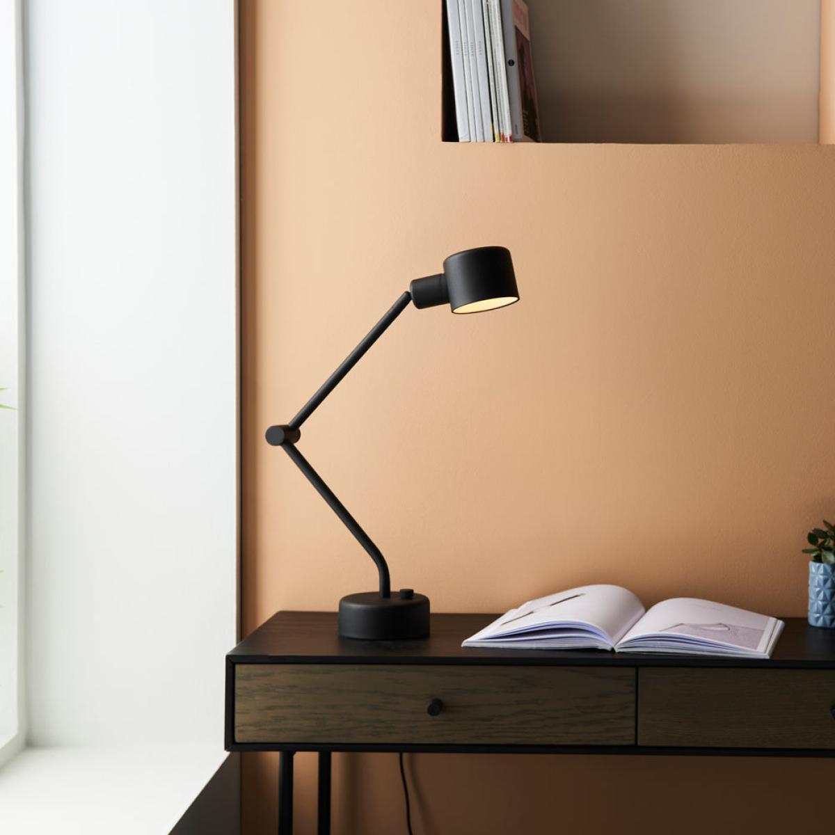 Clean industrial style detail makes this table lamp the perfect addition to a living space, with a textured black finish and a machined knurled adjustable arm knuckle for brilliant functionality. Featuring a rotational head, easy accessible on/off switch and 1.5 metre black fabric flex to plug, the table lamp is perfect to use with E14 LED lamps.