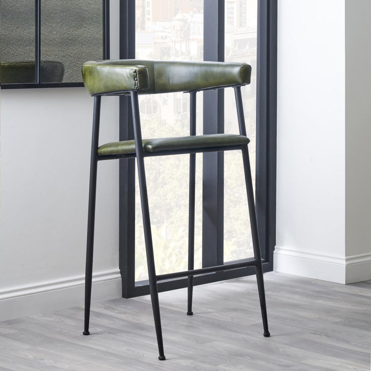 I love this stool for its sleek blend of vintage-inspired leather and modern iron detailing, which makes it versatile across a variety of interiors. The sage green adds a fresh, understated pop of colour that works particularly well in both contemporary and eclectic settings. It's a great choice for kitchens with a rustic edge or urban-style bars where a touch of colour and texture can elevate the space. Practical styling tips include pairing it with a marble or wood-topped counter to highlight its understated elegance, or grouping a few around a breakfast bar for a mix of comfort and style. Its curved design is not only visually appealing but ensures comfort, making it a practical addition that's both stylish and functional.