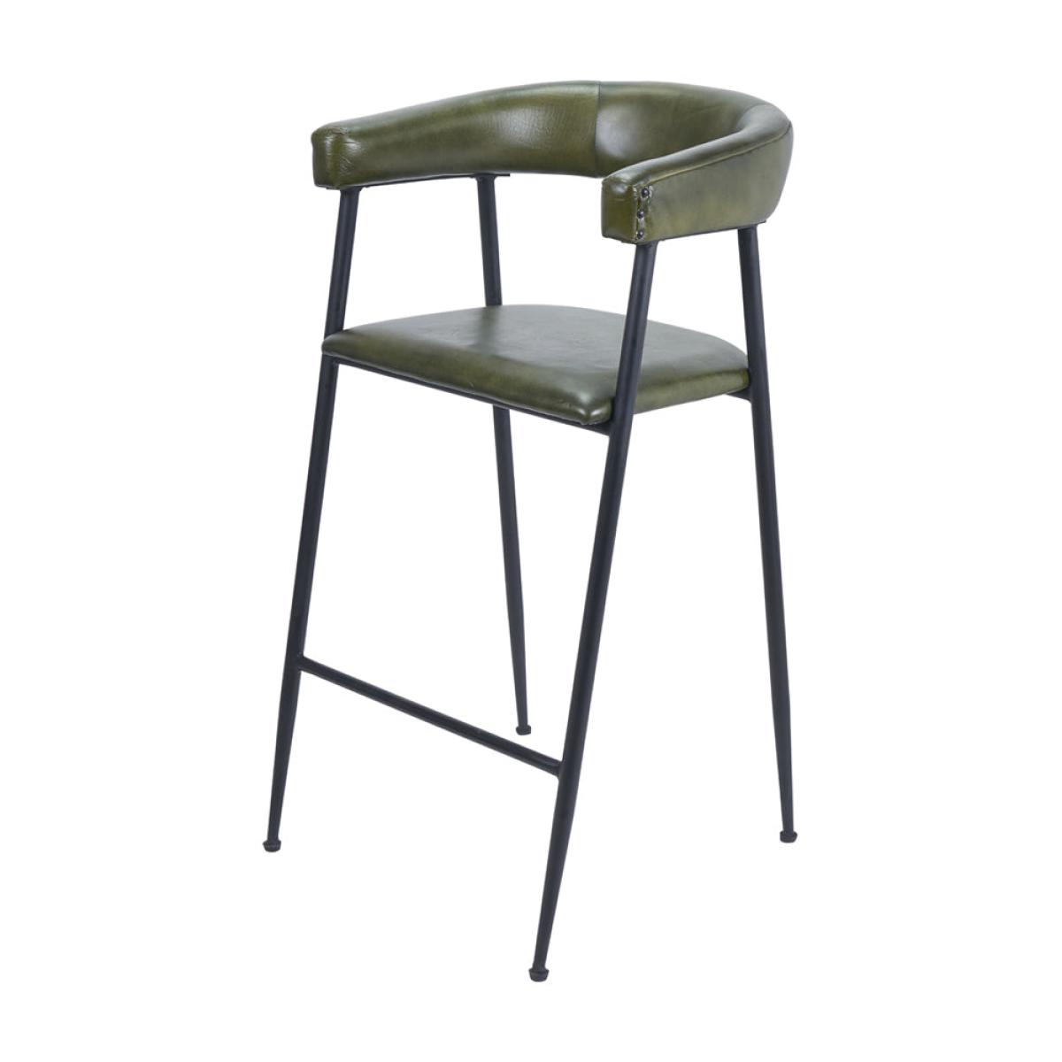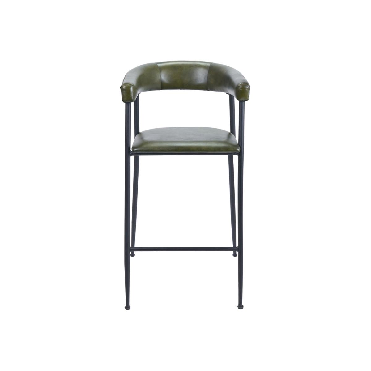 Olivia's Fennel Leather and Iron Curved Bar Stool in Sage Green