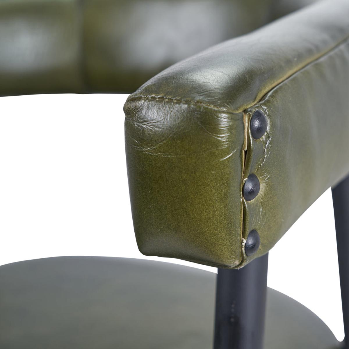 This stunning sage green leather bar stool with cushioning detail and contemporary matt black metal frame offers both comfort and style. This supportive and stylish bar stool will suit a range of interior decors and add a touch of colour.