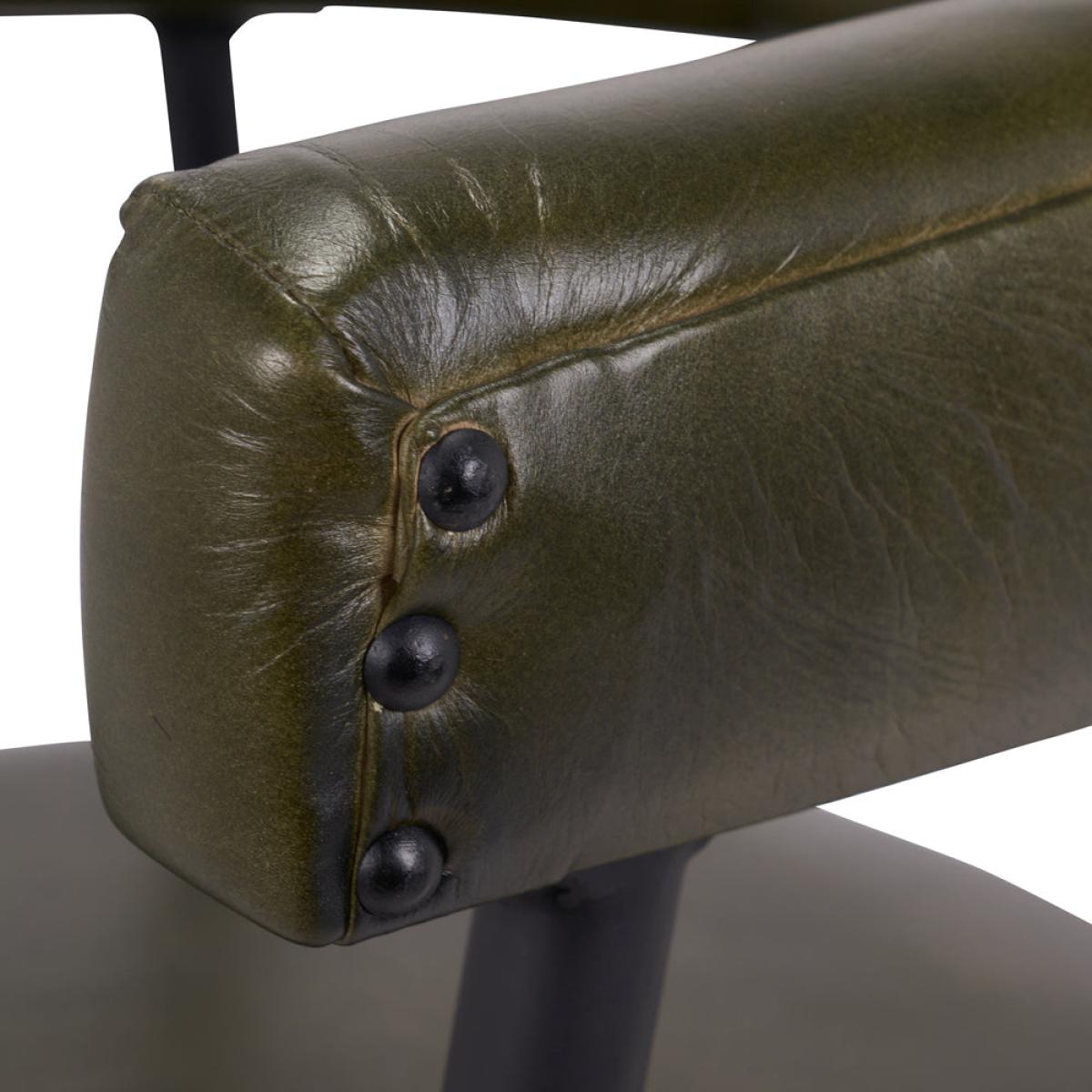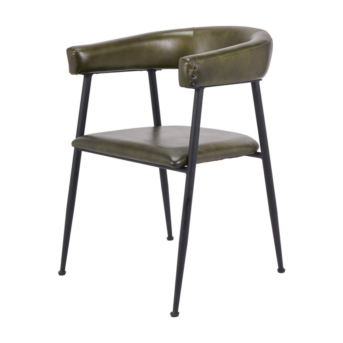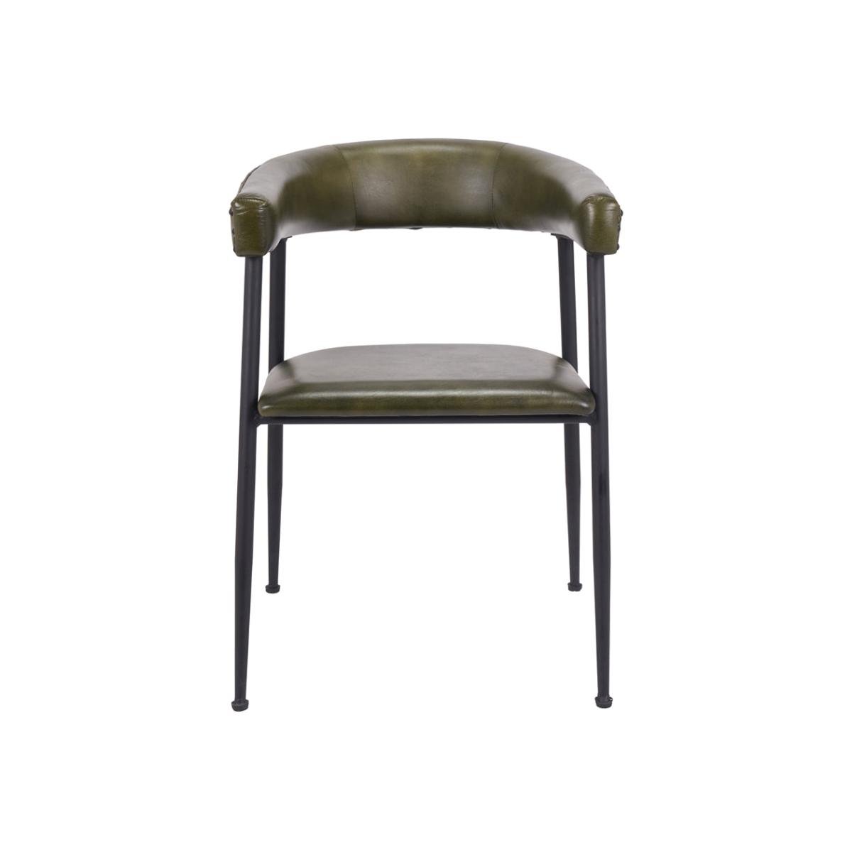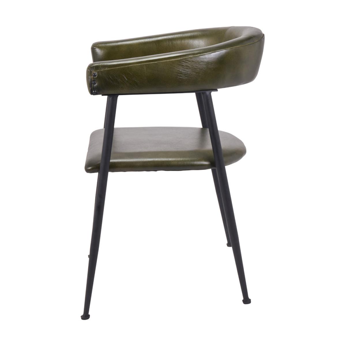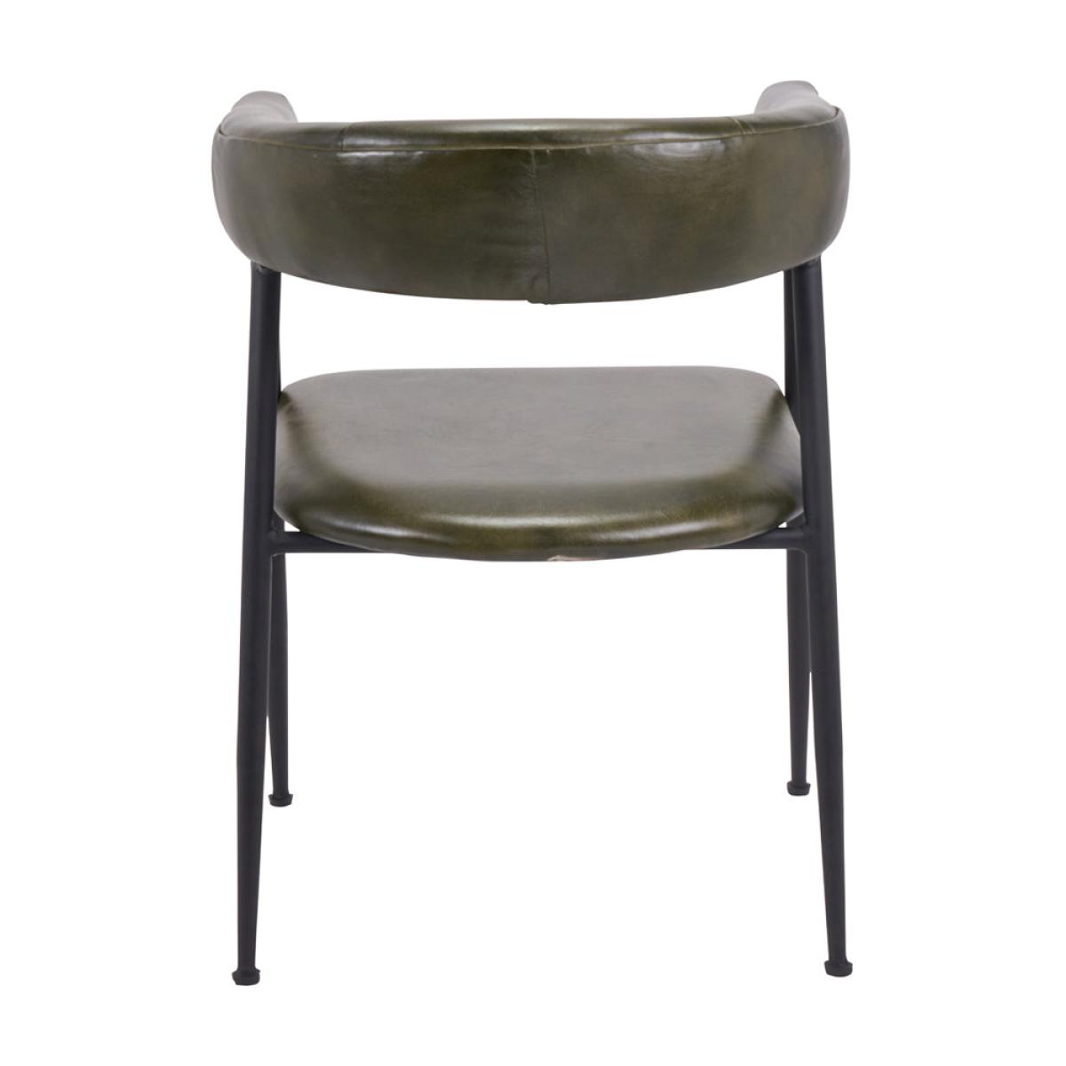 Olivia's Fennel Leather and Iron Curved Dining Chair in Sage Green