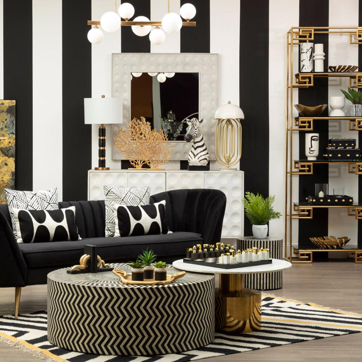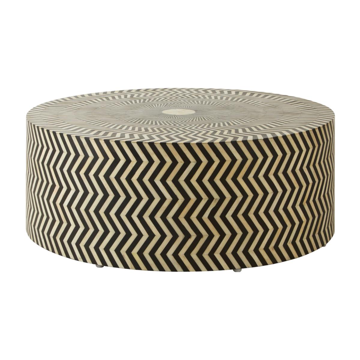 Inspired by the eclectic nature of global travel, the Fusion coffee table is an amalgam of different cultures and styles. The round coffee table's minimal silhouette allows the bold zig-zag pattern. View More. Inspired by the eclectic nature of global travel, the Fusion coffee table is an amalgam of different cultures and styles. The round coffee table's minimal silhouette allows the bold zig-zag pattern to take centre stage. Made from bone inlay, this coffee table adds a touch of monochrome to interiors with its black and white zig-zags.