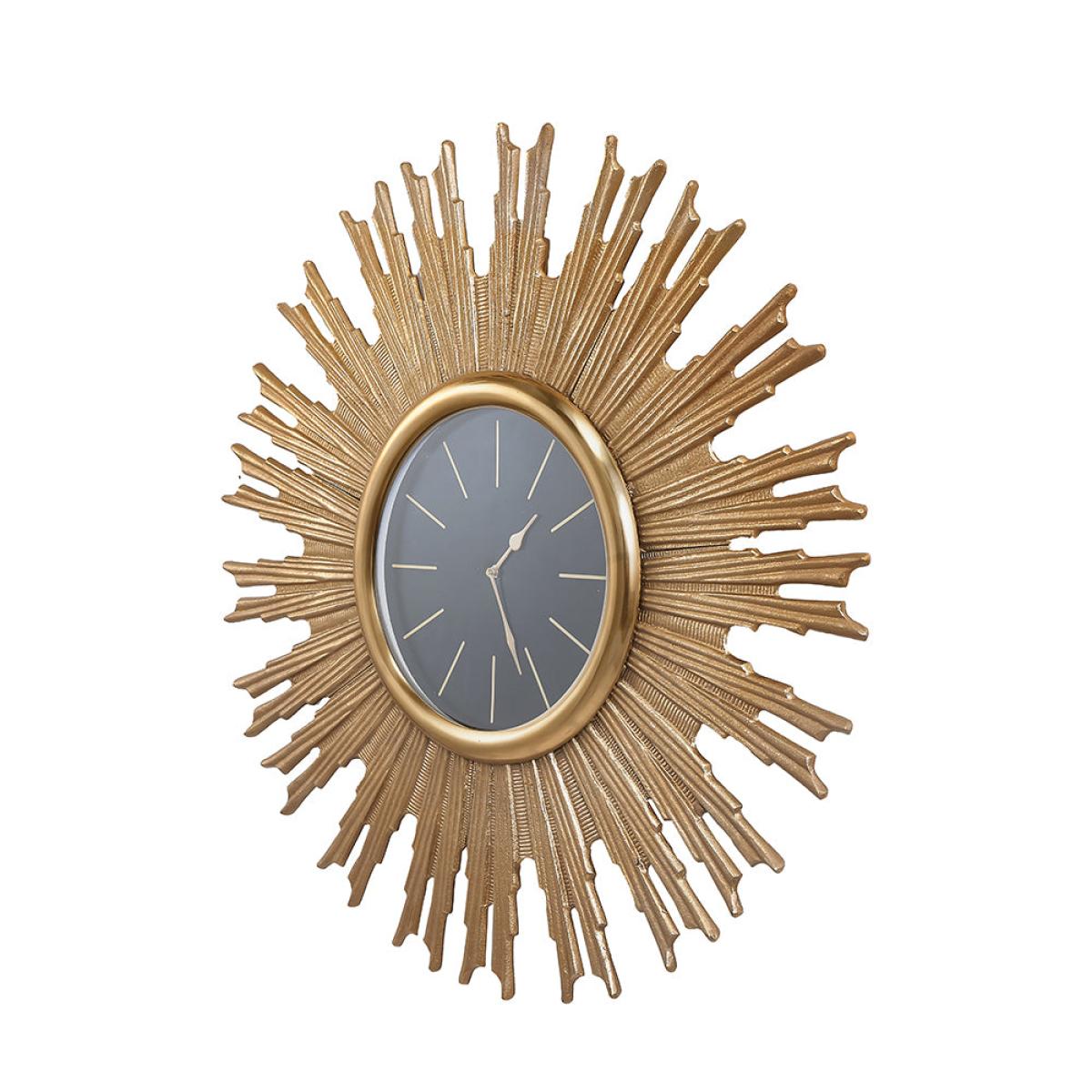 Travel back to the 1920's art deco period with this striking fold metal starburst clock. The intricate gold frame creates a flamboyant statement that demands attention whilst ensuring sophistication. Matching mirror also available.
