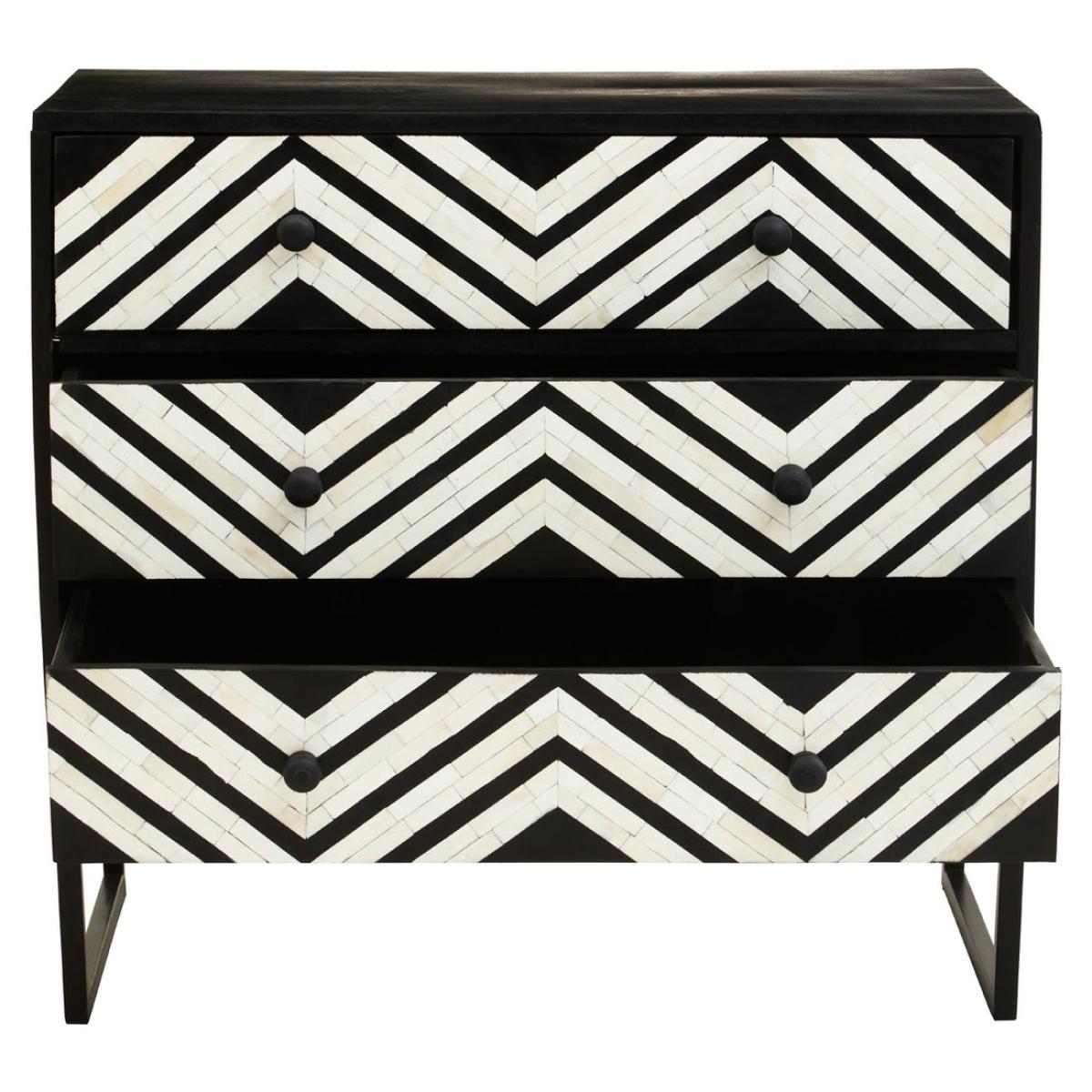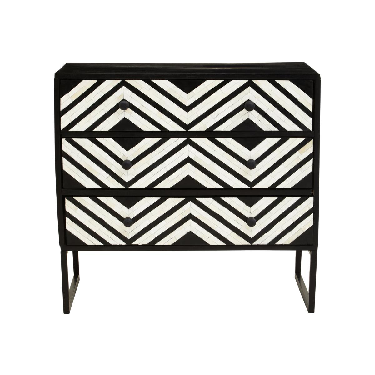 This chest is defined by hand laid bone inlay detail, forming a rhombus pattern on solid black wood. Three spacious drawers provide plenty of storage, each adorned with a knob grip. The black finis. View More. This chest is defined by hand laid bone inlay detail, forming a rhombus pattern on solid black wood. Three spacious drawers provide plenty of storage, each adorned with a knob grip. The black finish sledge base harmonises with the organic wood and contributes to modern minimalism.