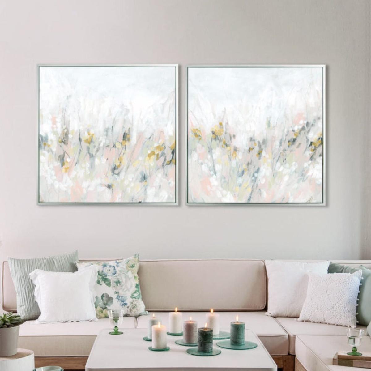 This artwork is hand crafted and made to order for you. This beautiful floral artwork features soft pastel shades and has been finished with hand applied silver metal leaf and pearlized embellishmen. View More. This artwork is hand crafted and made to order for you. This beautiful floral artwork features soft pastel shades and has been finished with hand applied silver metal leaf and pearlized embellishment. Presented in our grey L shape frame.
