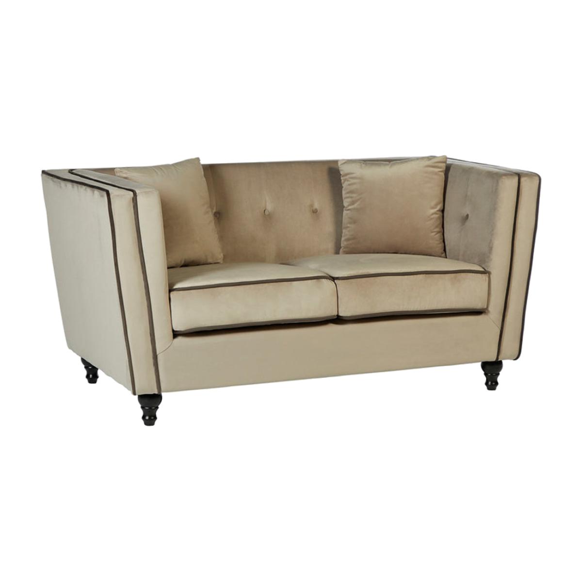 This gorgeously plush two-seater sofa is available in a soft shade of mink velvet with brown piped trim. This is the perfect sized sofa to place in your study or bedroom or use as a main sofa in your living space. This sofa has been upholstered beautifully, and it looks as comfortable as it feels. This seat offers a high back and arms, which adds to the comfort of the sofa and supports the sitter's back wonderfully. This piece is sold separately, but it can be twinned for symmetry. The dimensions of this lovely sofa are H: 79 x W: 160 x D: 85 cm Dimensions: H: 79 x W: 160 x D: 85 cm