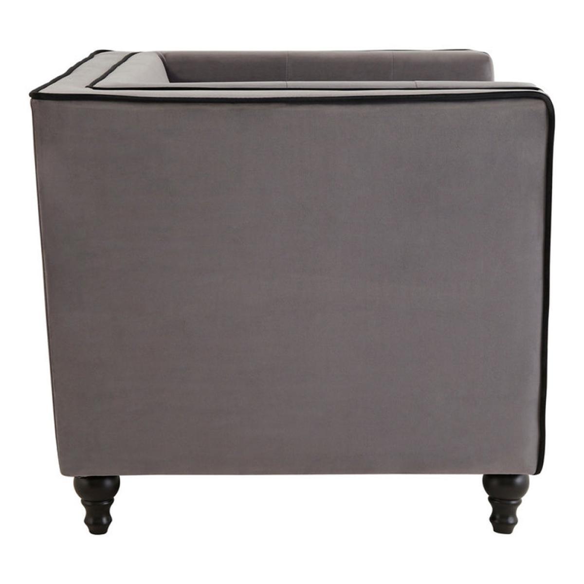 This contemporary Freya grey velvet chair from Olivia's can go with your other furniture and furnishings to create a cool, modern living area. The velvet is enhanced by the black piped trim, which combines to make a solidly cool addition to anyone who wants to create a more modern aesthetic in the home. The ornate legs allow a hint of the classical to show through, and the chair measures H: 79 x W: 107 x D: 85 cm. The black and grey hues enable it to complement any colour of living space so you can relax and enjoy a coffee or a glass of wine. *Moot Trading Ltd is not a lender and acts only as an introducer. The credit product is provided by Klarna Bank AB (publ). Credit is only available to permanent UK residents aged 18 and over, subject to status. Terms and conditions apply. Please note that the following products are not regulated by the FCA: Pay in 30 days and Pay in 3 instalments. Read More.