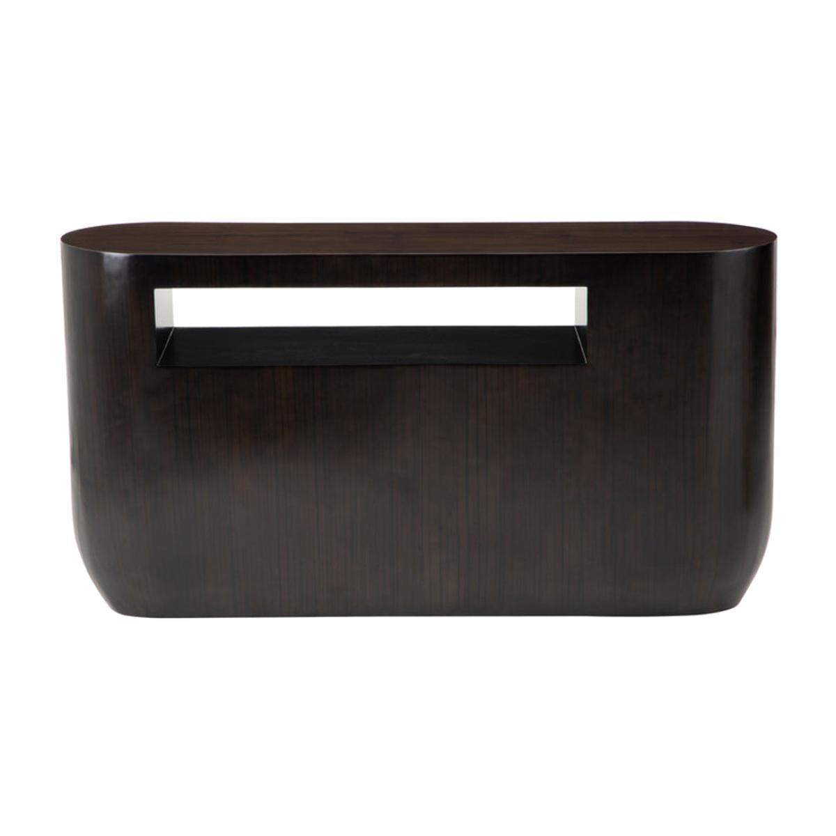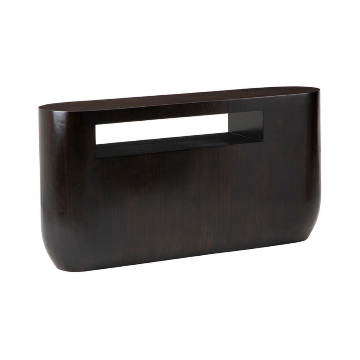 I love this Gabi console because of its sleek, contemporary design and rich dark finish, which lends a sophisticated touch to many interiors. It works particularly well in hallways or entryways, offering a stylish surface for a statement lamp or decorative accessories, and can also serve as a handy spot for keys or mail. For styling tips, consider pairing it with minimalist artwork or a couple of curated decorative objects to keep the look clean and modern. Its versatile shape makes it suitable for both modern and more eclectic spaces, especially when contrasted with lighter colours or textured textiles to add visual interest. Overall, it’s a practical and stylish addition that balances form and function effortlessly.