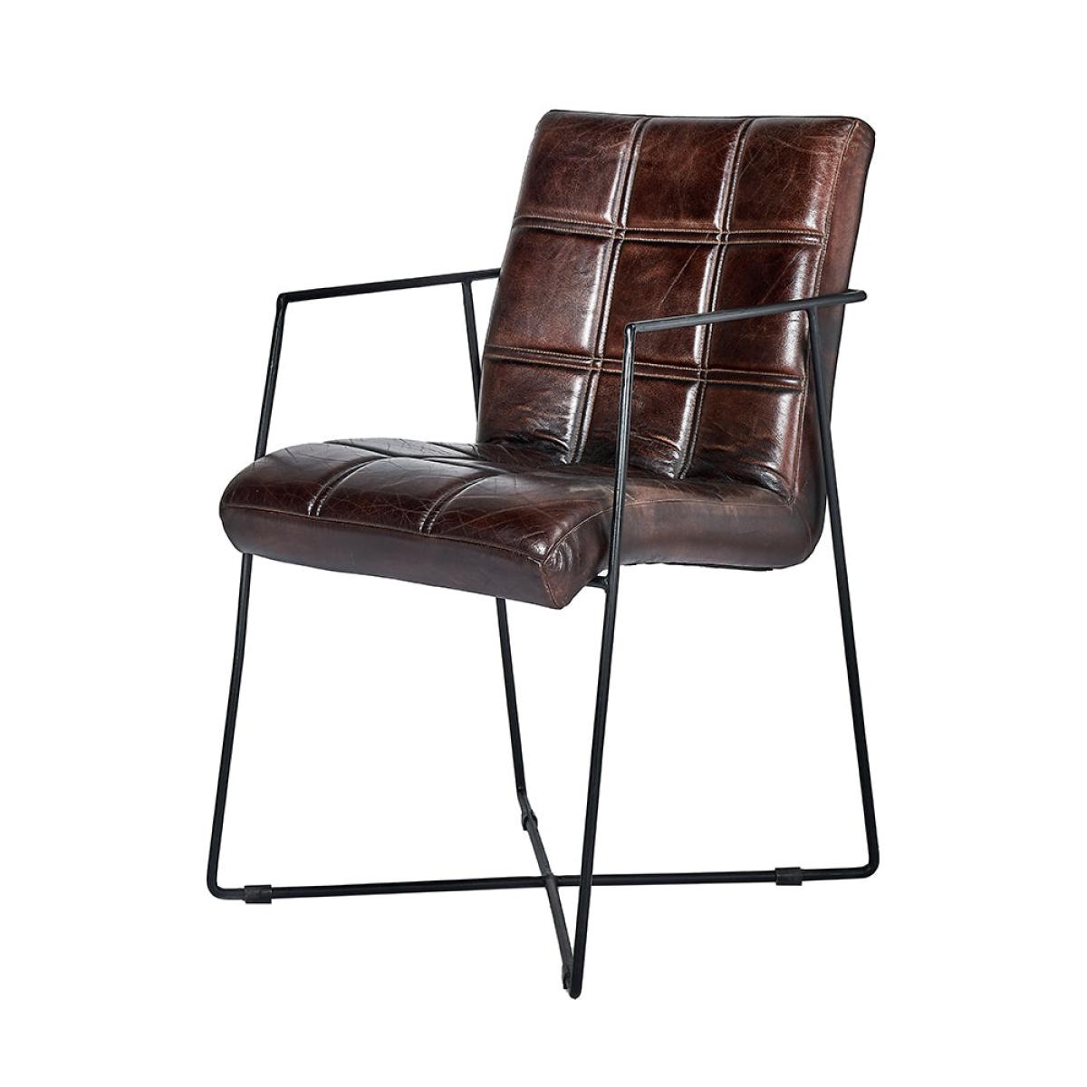 Olivia's Hugo Mahogany Leather and Iron Arm Chair