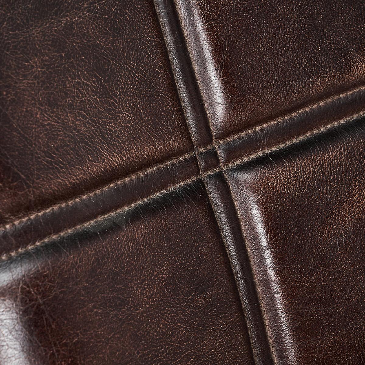 The sophisticated mahogany coloured leather arm chair with square padded detailing is the epitome of chic. The stunning chair will be the focal point of any room.