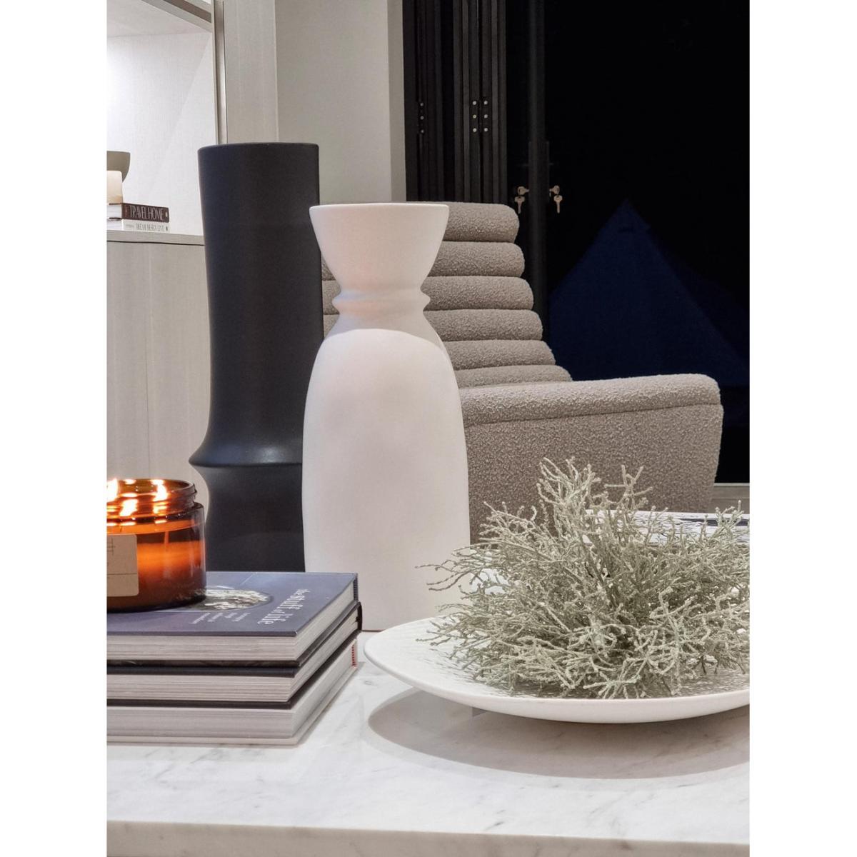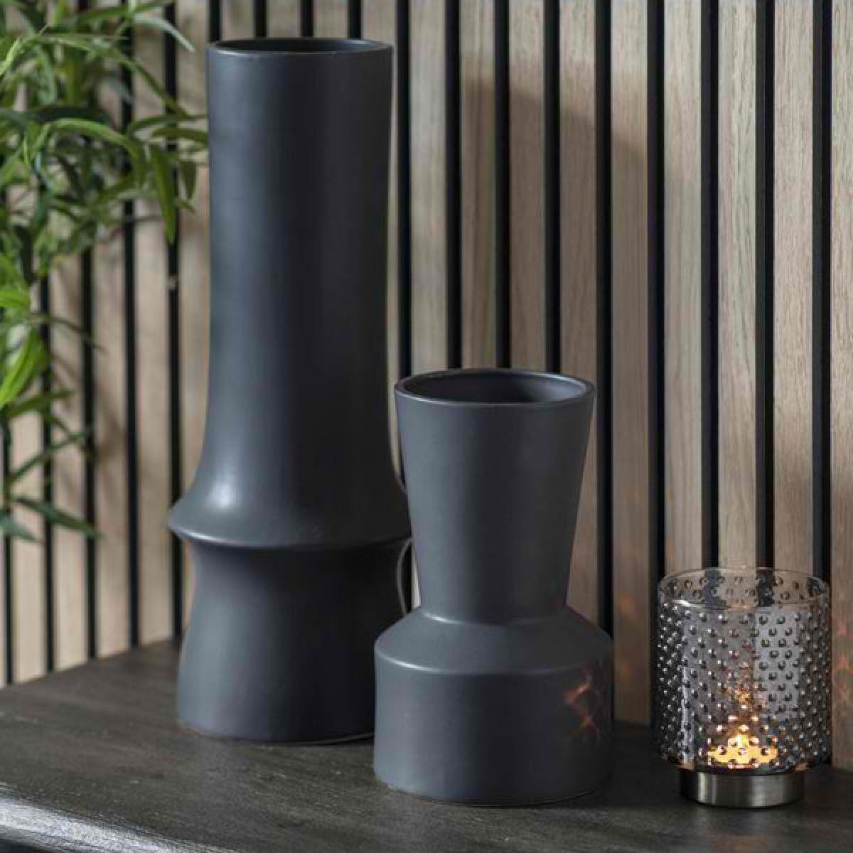 I really like this vase for its sleek, modern silhouette and versatile dark grey tone, which makes it suitable for a range of interiors. It works particularly well in minimalist, industrial, or Scandinavian spaces where its understated elegance can shine. For styling, try pairing it with simple greenery like dried grasses or single-stem flowers to highlight its shape without overwhelming the space. It also looks great as a standalone statement piece on a console or side table. To keep the look cohesive, place it alongside other textural elements like wood or stone, which will complement its muted, matte finish. Overall, it’s a practical choice for anyone wanting to add a touch of contemporary sophistication while remaining adaptable to different decor styles.