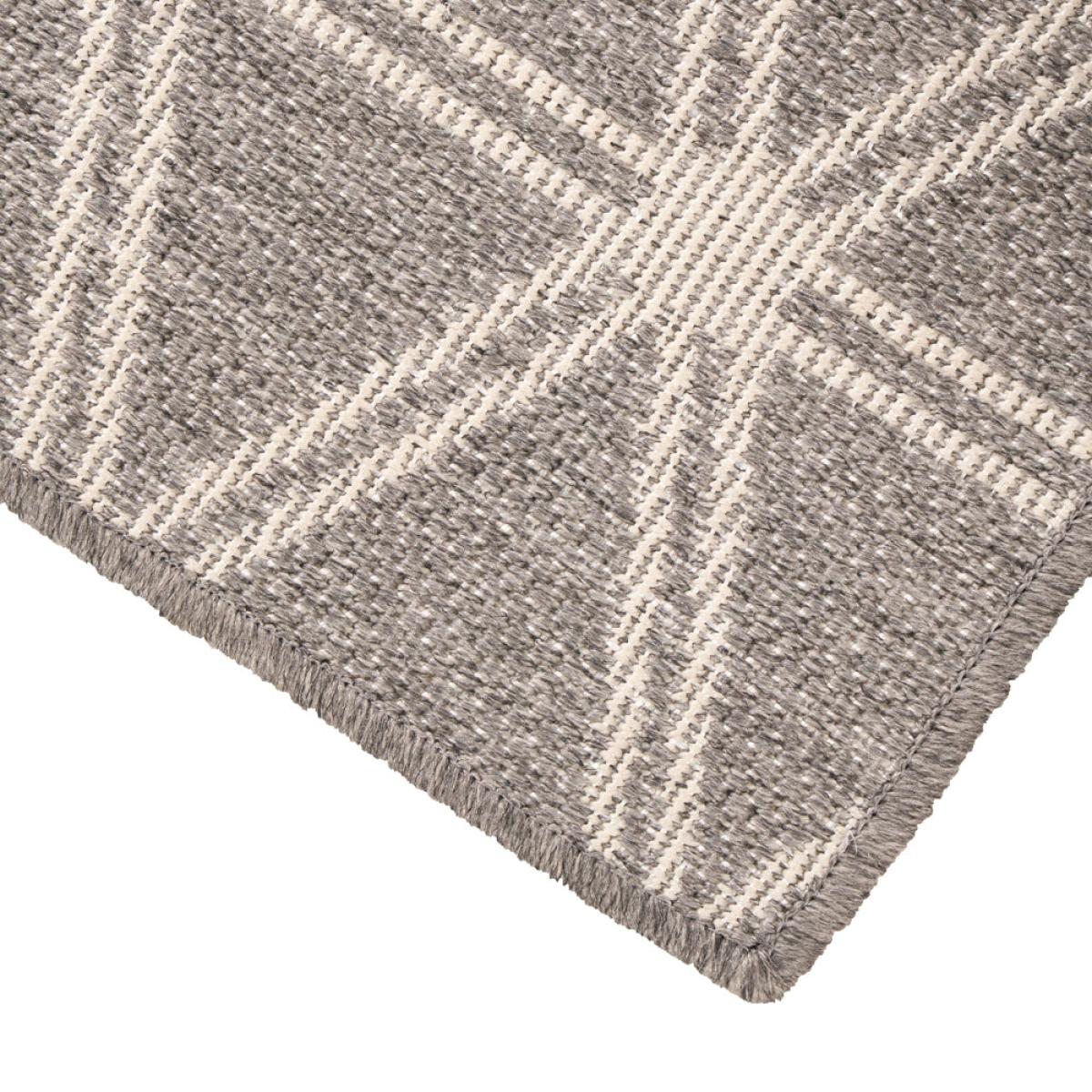 Add a touch of sophistication to your outdoor or indoor decor with Olivia"s Indoor Outdoor Silver, Grey and White Geometric Design Rug. Made from tightly woven Polypropylene fibers, these rugs are both durable and visually appealing. The geometric design, in silver, grey, and white hues, adds a modern flair to any space. Whether placed in the garden or indoors, these rugs are non-toxic, mold and mildew resistant, ensuring long-lasting use. With its easy maintenance and stylish design, this rug is perfect for high-traffic areas or well-used spaces, offering both practicality and elegance. Rug Dimensions: H: 1 cm x W: 230 cm x D: 160 cm