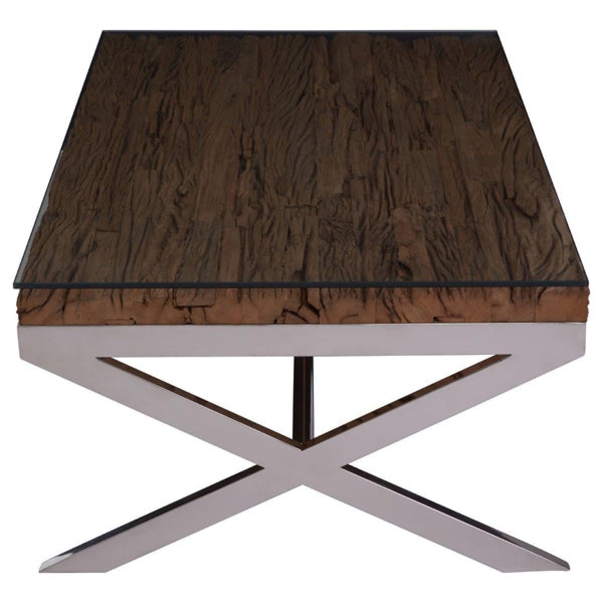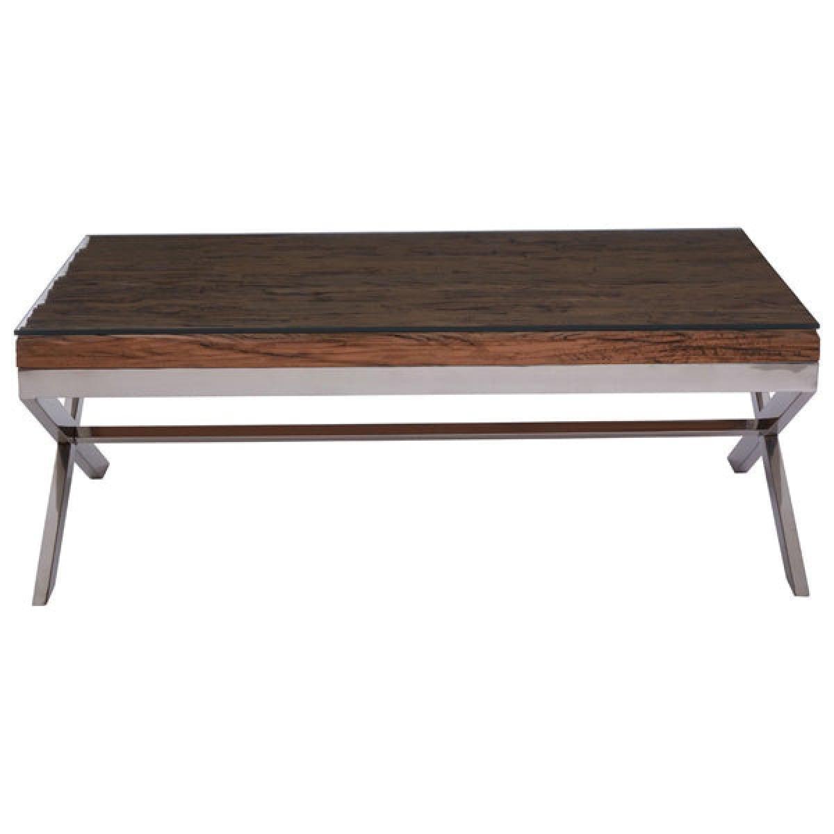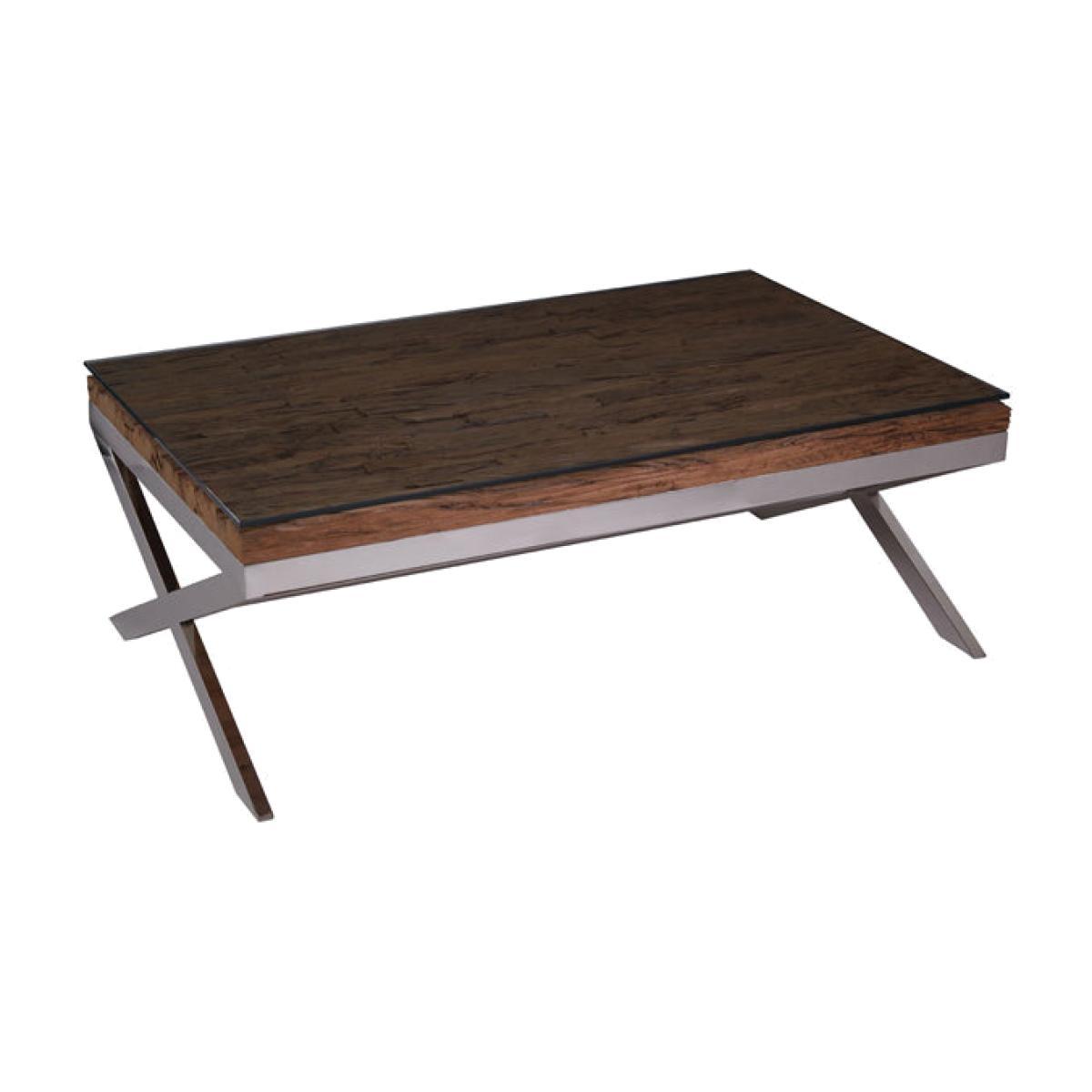 Rustic charm fused with modernist design creates the most attractive pieces of furniture, and this Kara Coffee Table from Olivia's is a superb example. Kara's table top is crafted from natural wood, its characterful grain displayed beautifully beneath the glass top. The beautifully polished stainless-steel base features stunning cross pieces at its ends, contrasting nicely with the table top. The effortless style of this piece ensures its place in many design schemes, and as the perfect centrepiece for your furniture arrangement. Measuring 46cm in height, 130cm in width, and 80cm in height, the Kara Coffee Table is sure to have a transformational effect in your home. *Moot Trading Ltd is not a lender and acts only as an introducer. The credit product is provided by Klarna Bank AB (publ). Credit is only available to permanent UK residents aged 18 and over, subject to status. Terms and conditions apply. Please note that the following products are not regulated by the FCA: Pay in 30 days and Pay in 3 instalments. Read More.