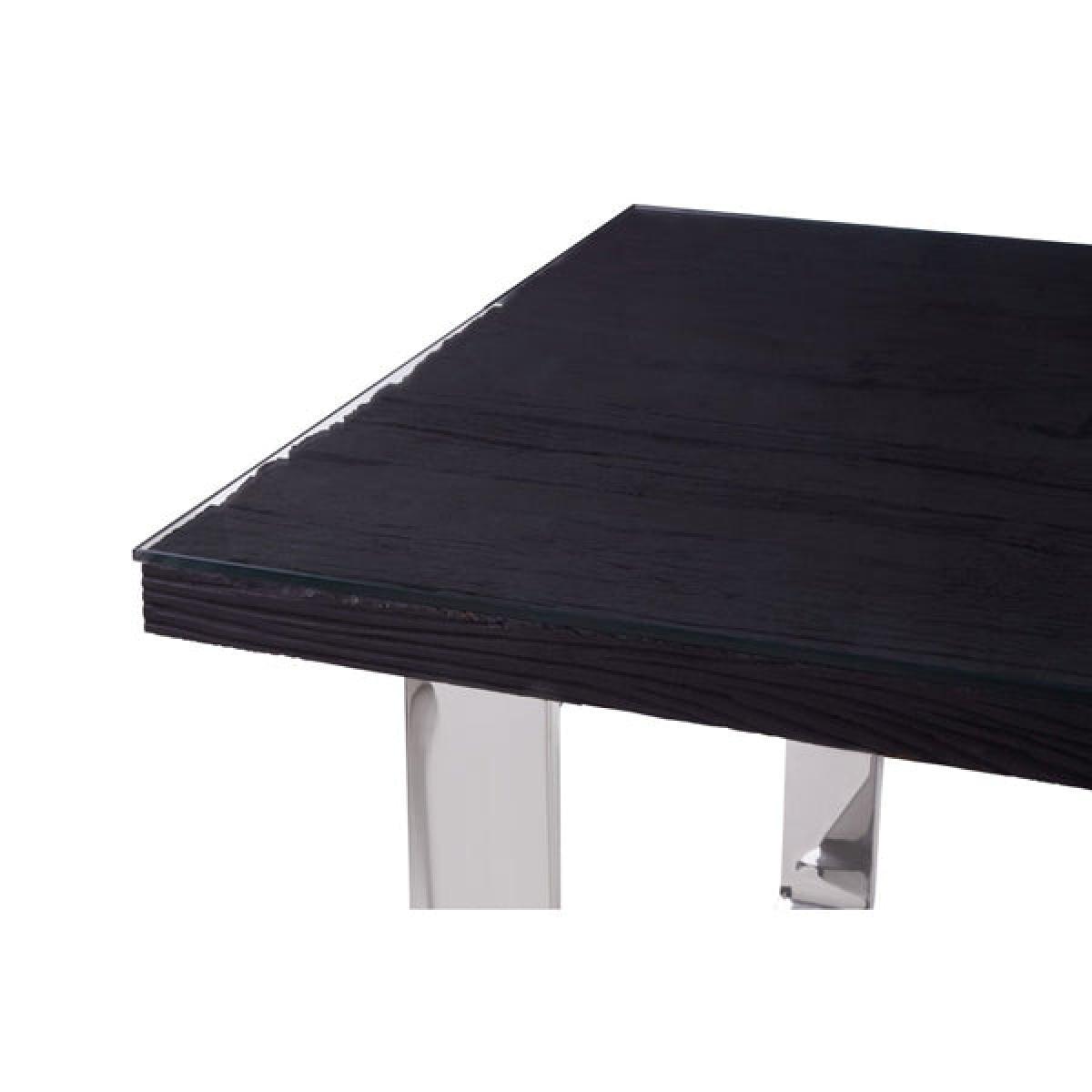 This stainless steel and black hardwood table shouts contemporary and stylish, ready to be placed in your dining space. The U-shaped stainless-steel legs are carefully crafted to go with the overall design of the table, making for a modern piece to be enjoyed as well as used as an all-important table. Finished with a protective glass top that is easy to keep clean, without detracting from the stunning black hardwood that contrasts beautifully with the silver-coloured legs. This table will surely become a part of many happy memories as you use it every day for eating, drinking and the rest of daily life. *Moot Trading Ltd is not a lender and acts only as an introducer. The credit product is provided by Klarna Bank AB (publ). Credit is only available to permanent UK residents aged 18 and over, subject to status. Terms and conditions apply. Please note that the following products are not regulated by the FCA: Pay in 30 days and Pay in 3 instalments. Read More.