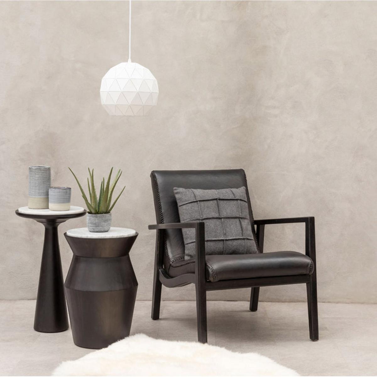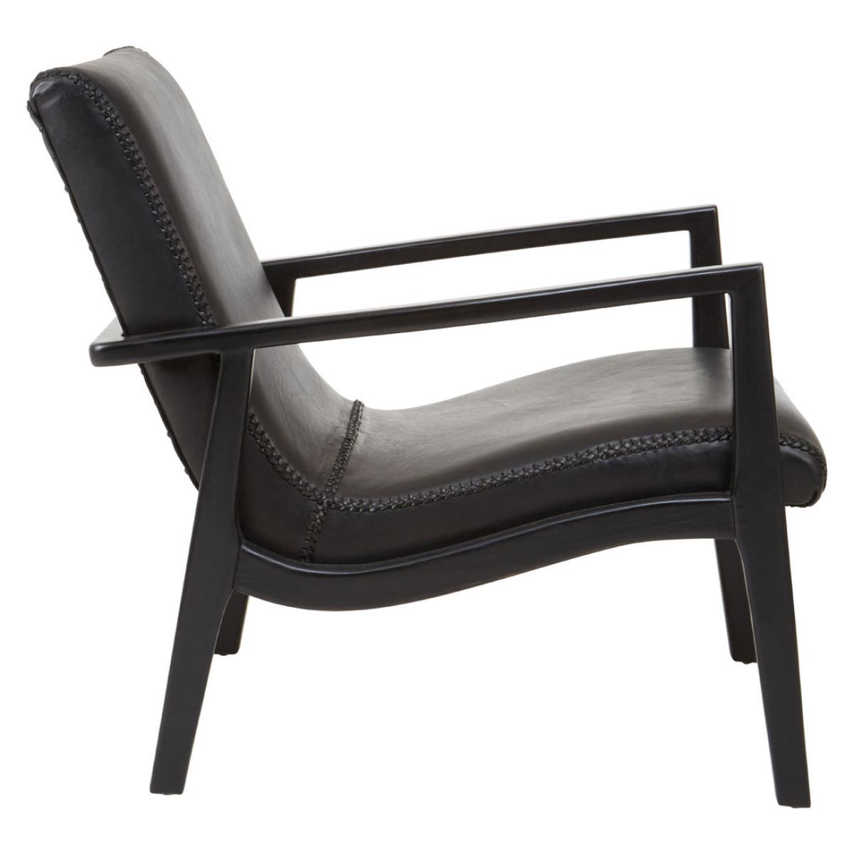 Boasting artisan craftsmanship, this chair introduces a rustic charm to the interior with the black cow leather upholstered seat neatly woven with knotted detail. The teak wood frame in the black f. View More. Boasting artisan craftsmanship, this chair introduces a rustic charm to the interior with the black cow leather upholstered seat neatly woven with knotted detail. The teak wood frame in the black finish complements the upholstery and provide support.