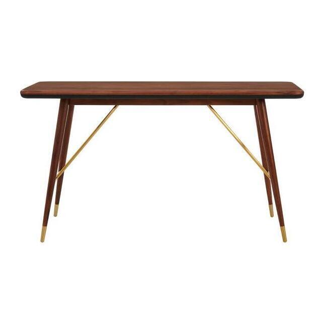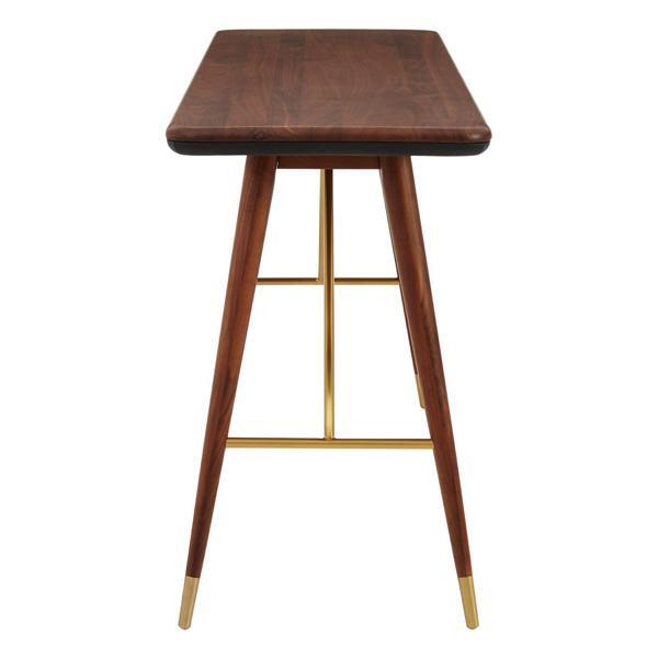 Kendall is a sophisticated and stylish console table, expertly crafted from walnut wood with a dark finish for that truly distinctive look. Because it’s made from walnut, the wood has a natural grain to it, and the table has then been given a leather trim to finish off the look. Towards the bottom of the table are a set of slender struts that provide added support to the top of the table. These have a warm brass finish, which contrasts elegantly with the dark wood of the rest of the piece. This table will truly harmonise with any contemporary home. *Moot Trading Ltd is not a lender and acts only as an introducer. The credit product is provided by Klarna Bank AB (publ). Credit is only available to permanent UK residents aged 18 and over, subject to status. Terms and conditions apply. Please note that the following products are not regulated by the FCA: Pay in 30 days and Pay in 3 instalments. Read More.