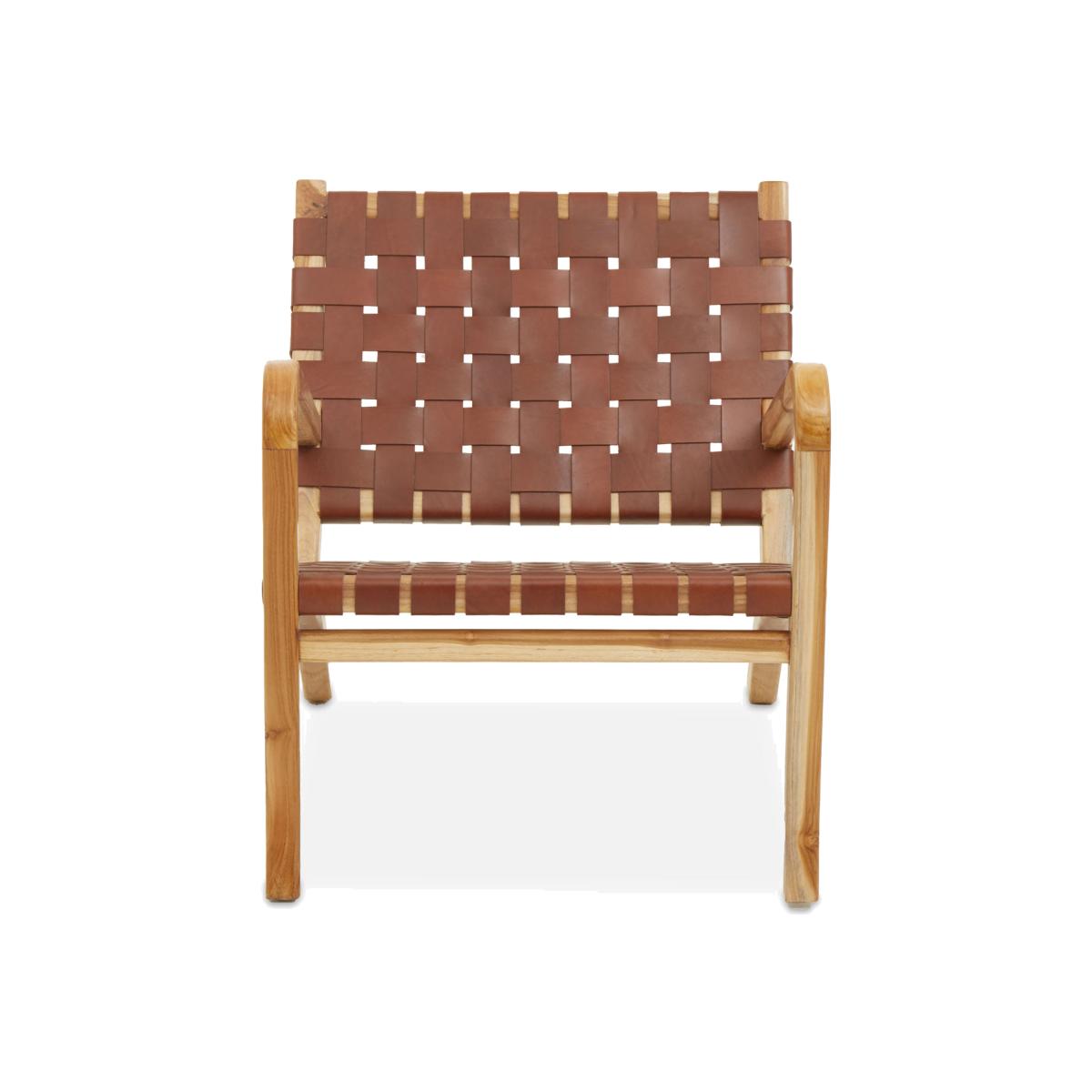 This chair is expertly handcrafted from genuine leather and exhibits a series of leather straps forming a lattice pattern weaving. The teak wood frame of this chair ensures stability, while the erg. View More. This chair is expertly handcrafted from genuine leather and exhibits a series of leather straps forming a lattice pattern weaving. The teak wood frame of this chair ensures stability, while the ergonomic arms offer an optimum seating experience.