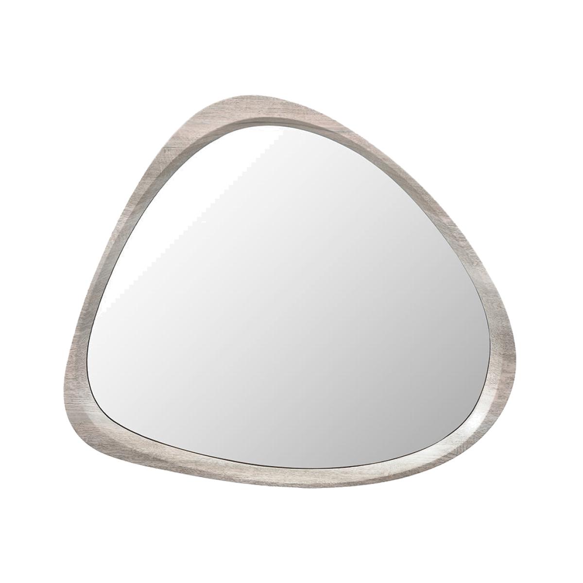 I love this wall mirror for its modern, organic shape and neutral grey finish, which adds a subtle, sophisticated touch to a variety of interiors. It works particularly well in contemporary, minimal, or Scandinavian styles, but can also bring a touch of softness to more eclectic or industrial spaces. Practical styling tips include placing it above a sideboard, console table, or entryway to create the illusion of space, or grouping it with other decorative pieces for visual interest. Its curved shape and sleek veneer make it an ideal statement piece while maintaining a clean and understated aesthetic.