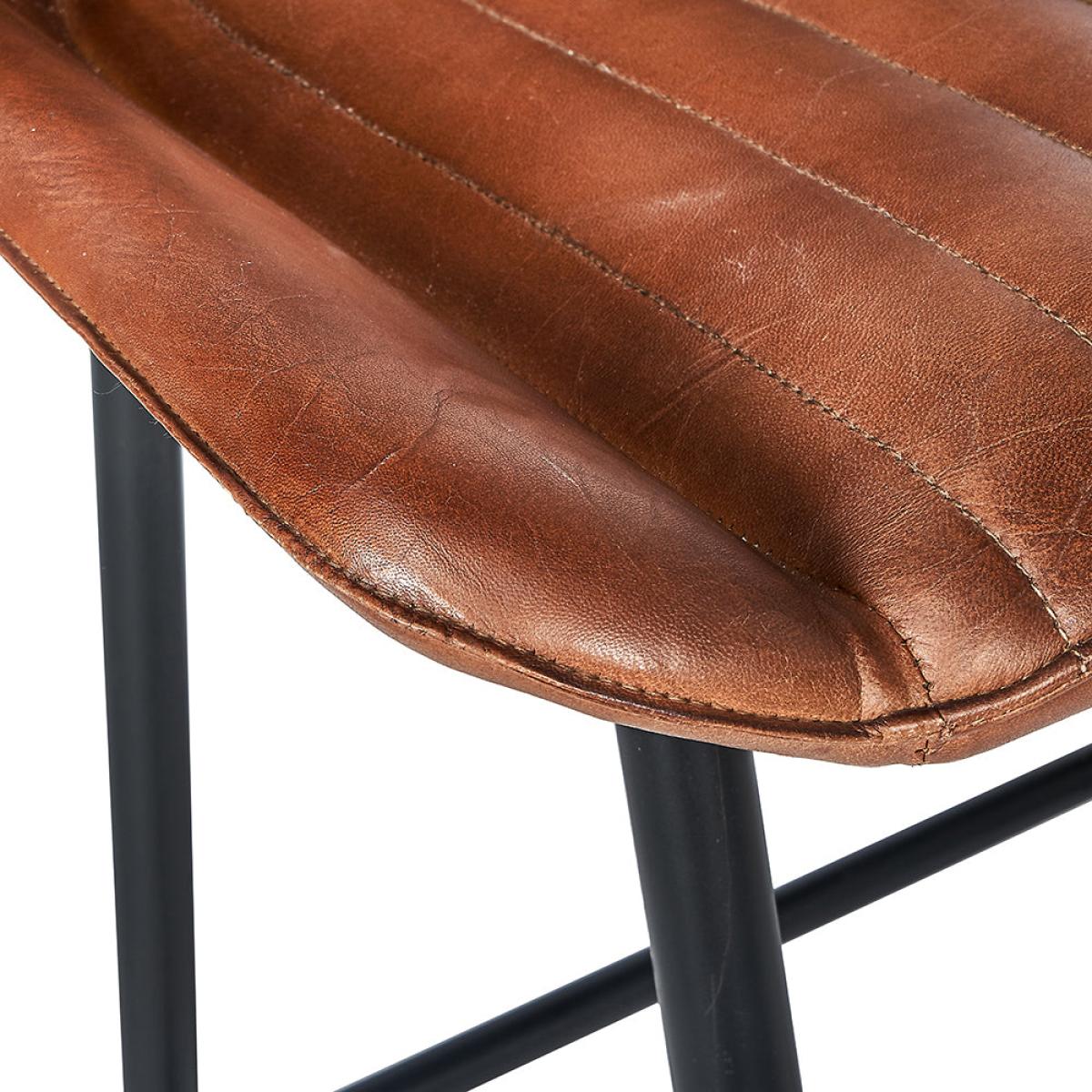 The Lia Bar stool is a modern and stylish vintage brown leather stool with ribbed effect cushioning. The stool with it's sleek black metal legs will look fantastic at any kitchen island or breakfast bar. Also available in other colours.