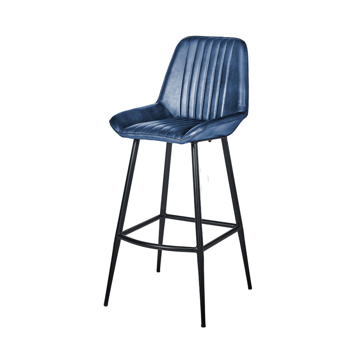 Olivia's Liberty Leather and Iron Retro Bar Stool in Blue