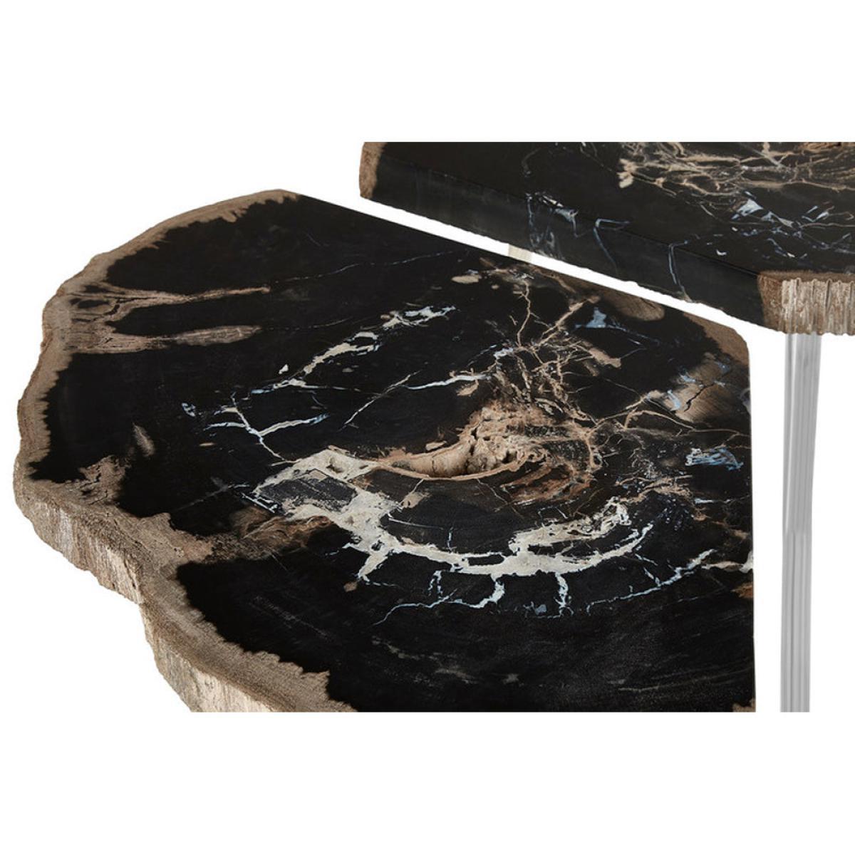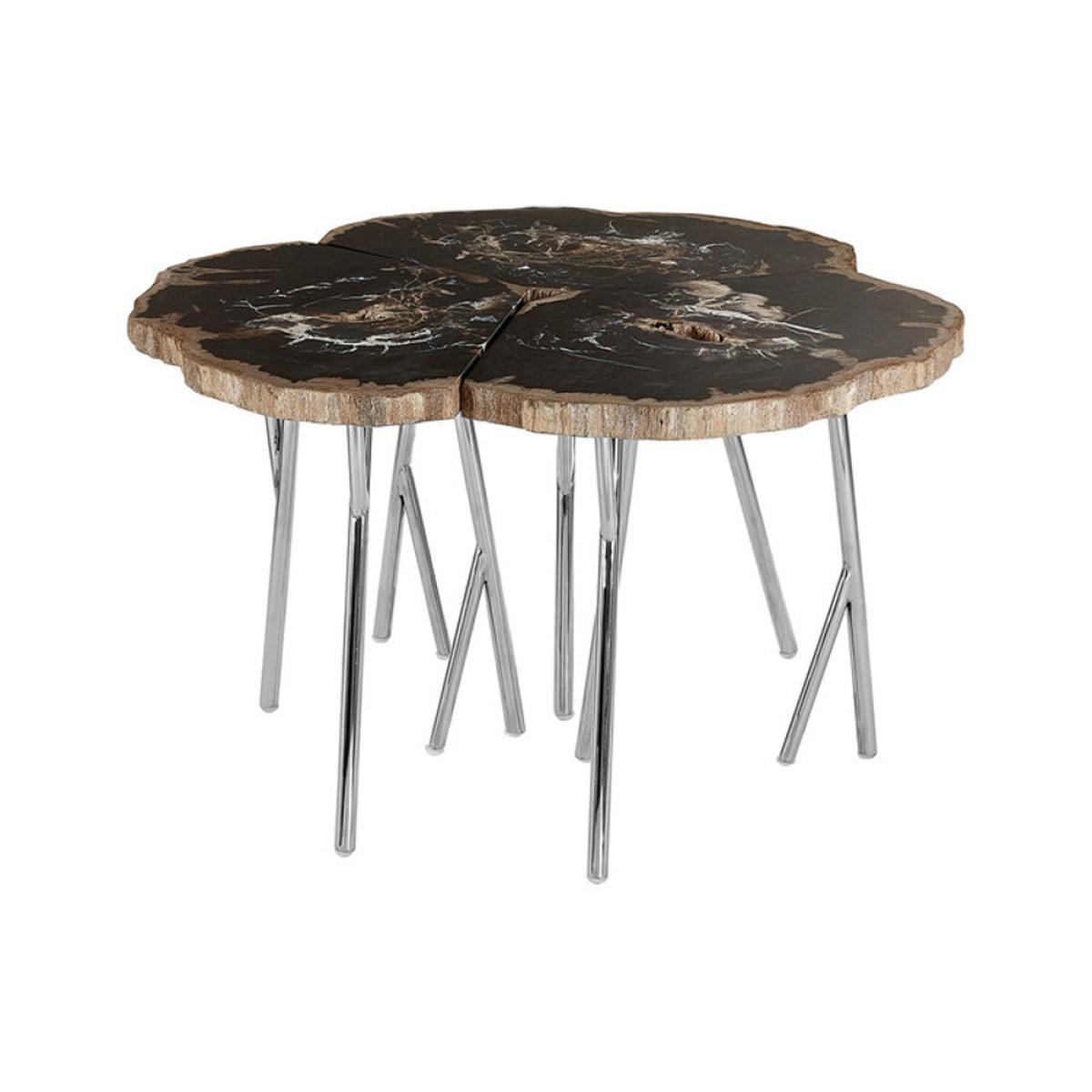 Formed under the ground over millions of years, the top of this light petrified wood and steel base coffee table from Olivia's is simply stunning. The mirror finish steel legs imitate branches of a tree, acknowledging the origin of the beautiful fossil they support. This product comprises three separate tables that fit together to form a single large table. This makes the piece incredibly versatile, as it can be used as a set of three side tables or a single coffee table. When the three tables are placed together, it has dimensions of 45cm high, 70cm wide and 60cm deep. *Moot Trading Ltd is not a lender and acts only as an introducer. The credit product is provided by Klarna Bank AB (publ). Credit is only available to permanent UK residents aged 18 and over, subject to status. Terms and conditions apply. Please note that the following products are not regulated by the FCA: Pay in 30 days and Pay in 3 instalments. Read More.