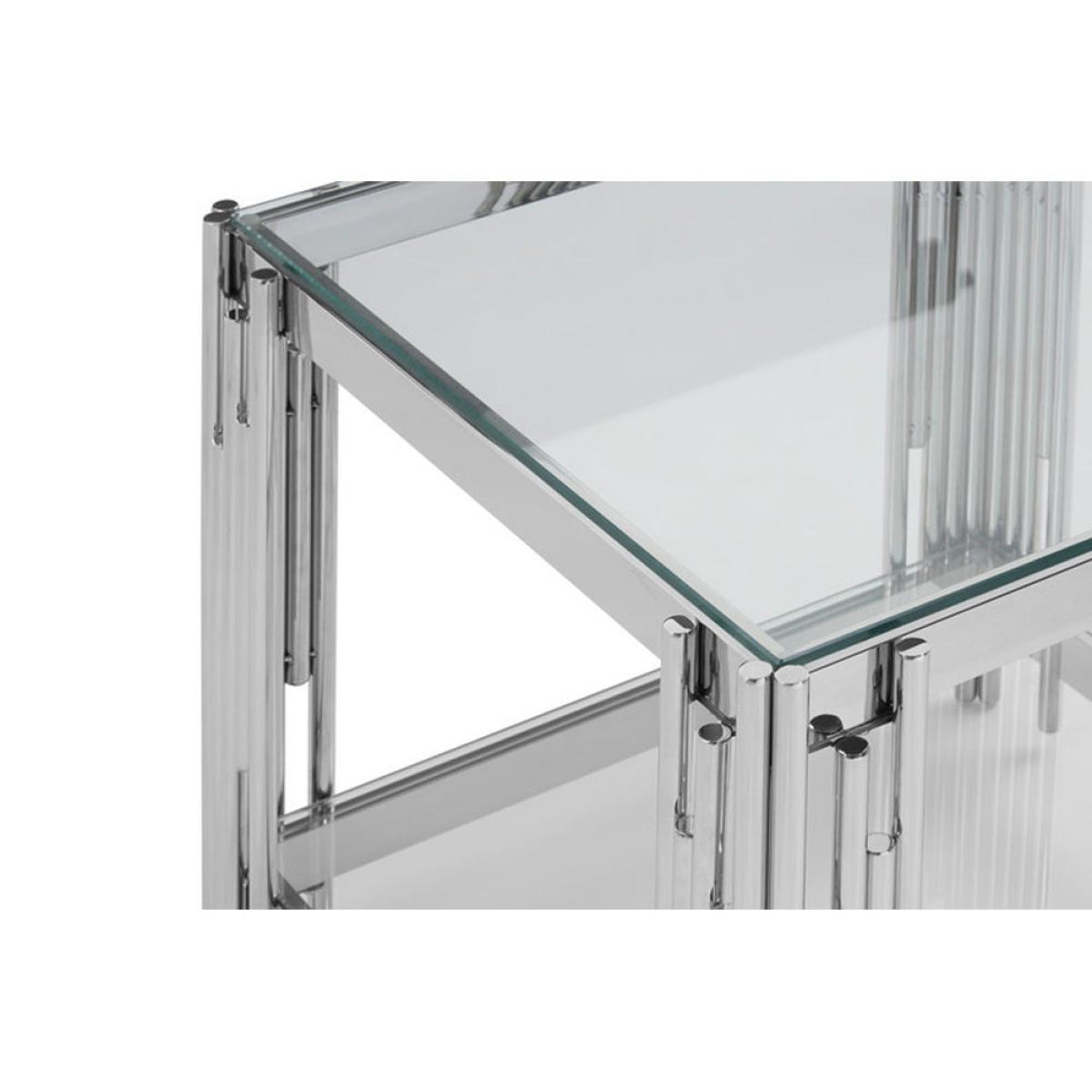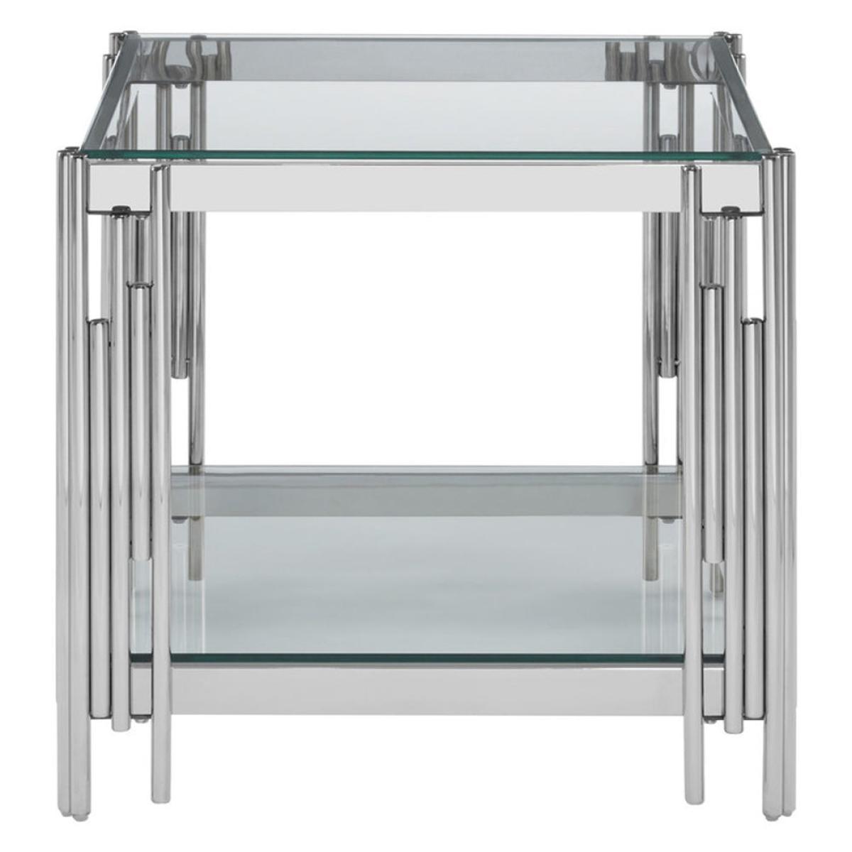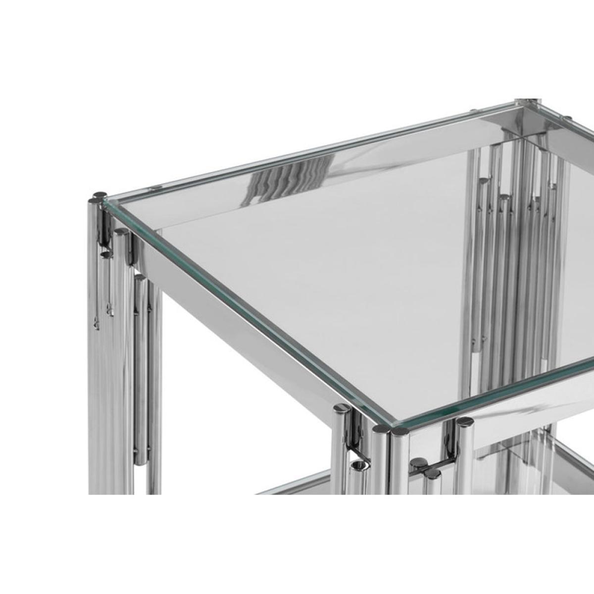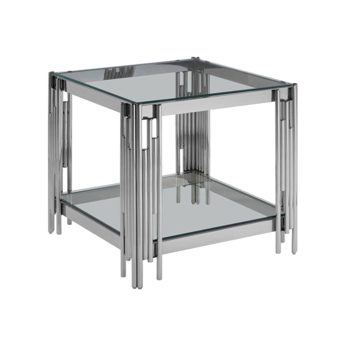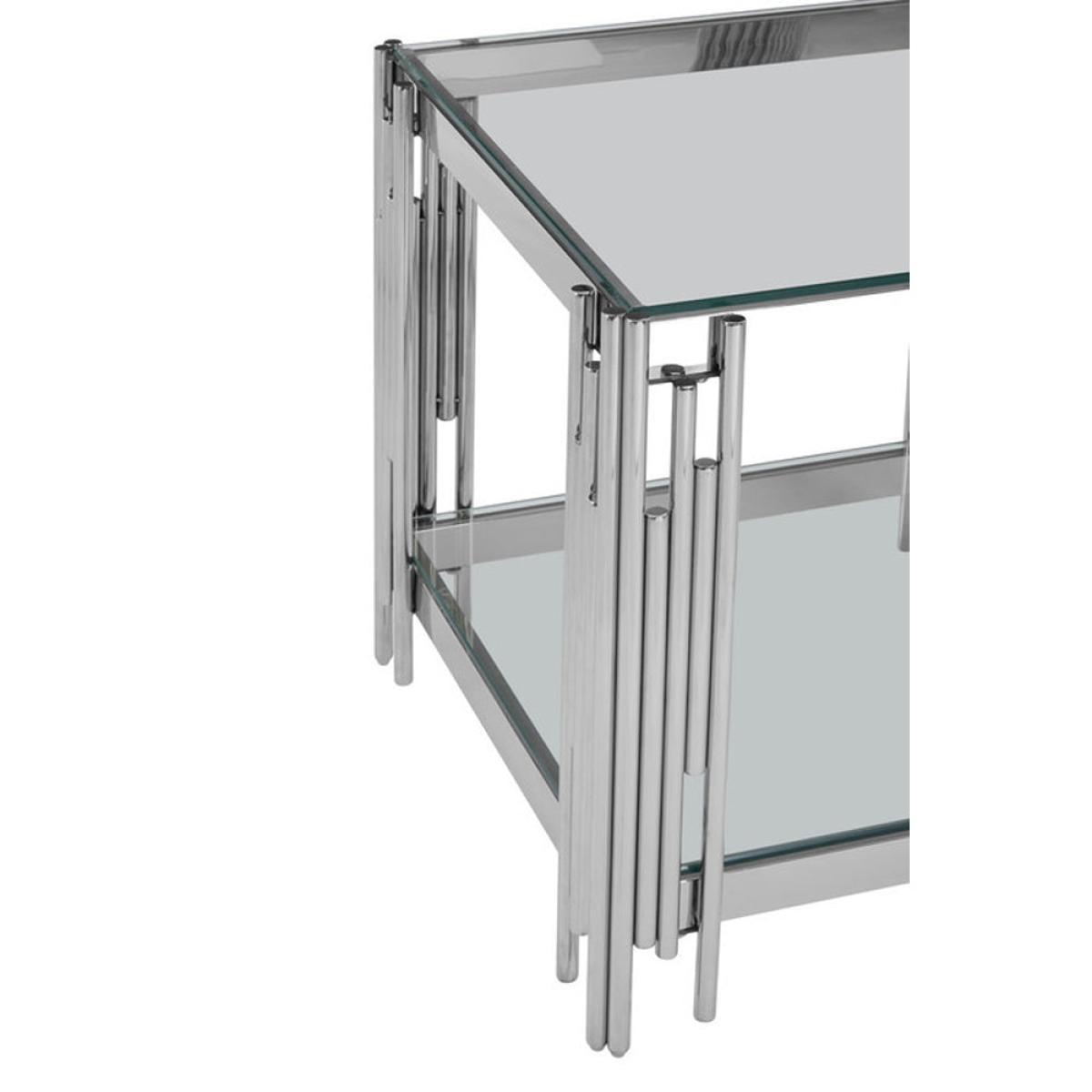 With its chrome finish and tempered glass, this stunning side table by Olivia's is uber trendy. Make a bold statement in your sitting room with this table, which is given a modern edge thanks to its decorative chrome batons. The Lilly Side Table is square with a contemporary tempered glass table top and base. Chrome batons of varying length have been used to decorate around the table legs and take this piece to the next design level. Its sleek and shiny silver finish means it is a perfect piece for a bold modern home décor. This table is 55cm by 55cm. *Moot Trading Ltd is not a lender and acts only as an introducer. The credit product is provided by Klarna Bank AB (publ). Credit is only available to permanent UK residents aged 18 and over, subject to status. Terms and conditions apply. Please note that the following products are not regulated by the FCA: Pay in 30 days and Pay in 3 instalments. Read More.