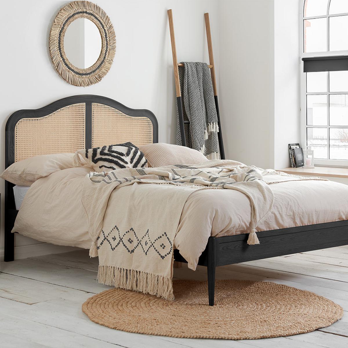 The Lincoln rattan bed is a beautiful French inspired frame which combines the beauty of weathered oak, with a rattan headboard to create a design that is elegant and sophisticated. Classically styled, the bed will work equally well in either a traditional or more contemporary interior. This frame also has a sprung slatted base to give natural bounce, adjusting to where pressure is most exerted to provide greater comfort. Please note: Olivia's beds are only suitable for a UK standard size mattress. Dimensions: Double - H: 115 x W: 143.5 x D: 198 cm. Kingsize - H: 115 x W: 158.5 x D: 207 cm. Super Kingsize - H: 115 x W: 189.5 x D: 207 cm Materials: Oak Assembly Required:Yes Care Instructions: Never use silicon or wax based furniture polish as this will leave a residue behind on the product. Gently dust using a soft buffing cloth. Make sure spills are blotted away quickly to avoid lasting stains. To remove any marks use a clean, slightly damp cloth. Never use detergents on any wood surfaces. Always follow cleaning instructions provided in the assembly instructions