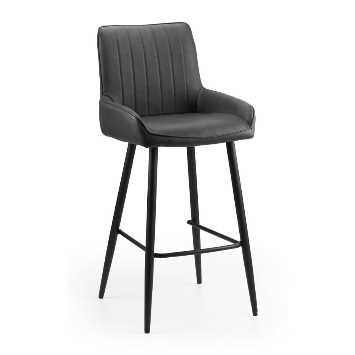 This Loft Barstool is finished in an antique black faux leather with a striking black metal frame, sure to compliment any contemporary décor. The perfect addition to any dining or bar area to create an industrial, retro feel within any space. Dimensions: H: 108 x W: 48 x D: 57 cm Materials: Faux Leather & Metal Assembly Required:Yes Care Instructions:Wipe with a clean damp cloth. Avoid household cleaners & abrasives