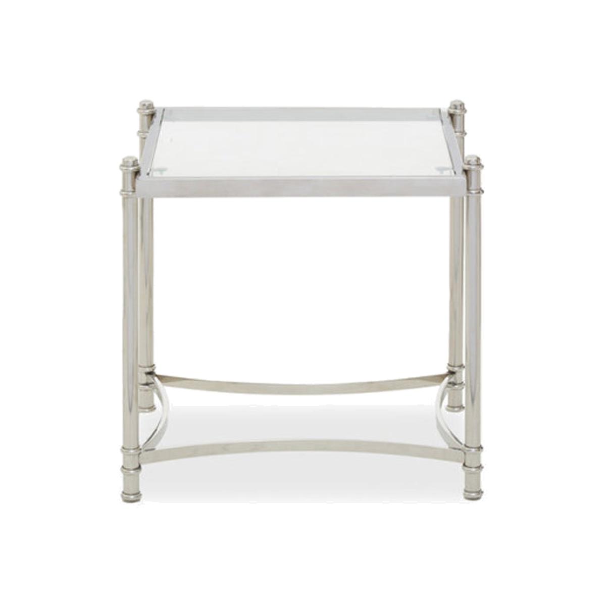 Olivia's Ashley silver side table is a masterclass in elegant, sophisticated design. Constructed from clear glass and stainless steel, this chic table is uniquely versatile and can be incorporated into the design of various spaces throughout your home; for example, position it beside your favourite living room armchair to house a sleek table lamp or place one on either side of the bed in your guest room to create a refined space that will instantly put your guests at ease. The Ashley table will also look lovely in a large bathroom, where it can be used to display your most-used bath, body and skin products. Dimensions: H: 55 x W: 56 x D: 50 cm