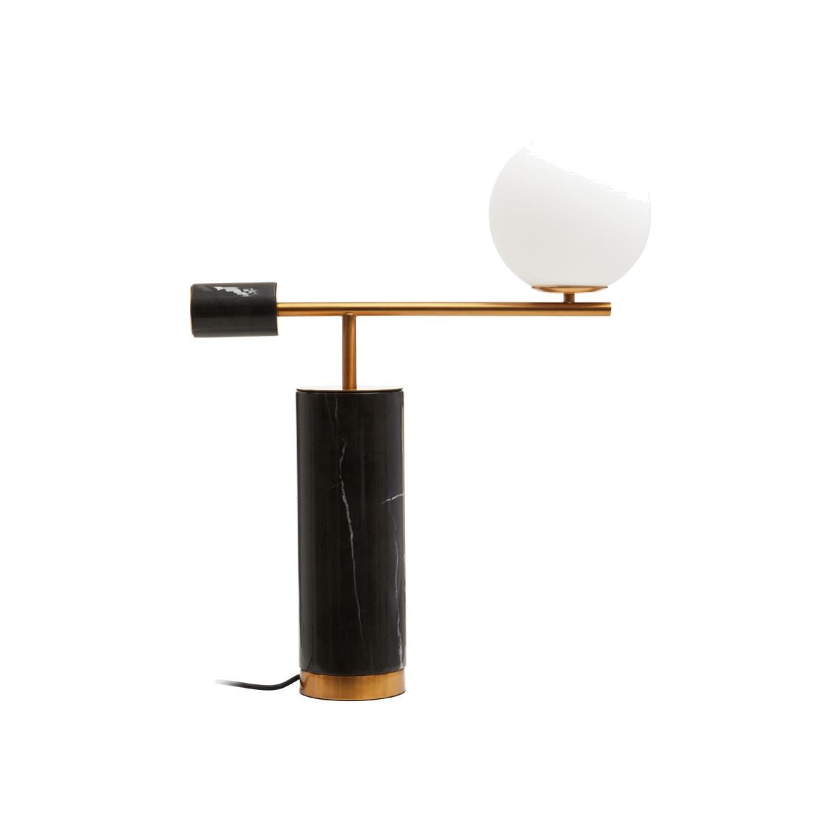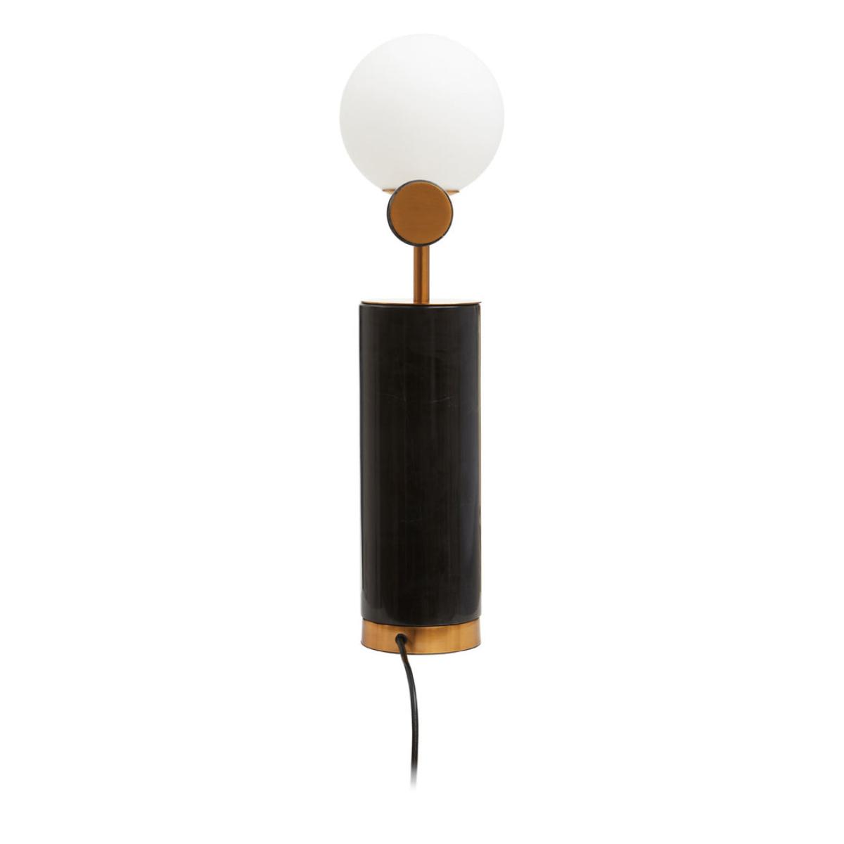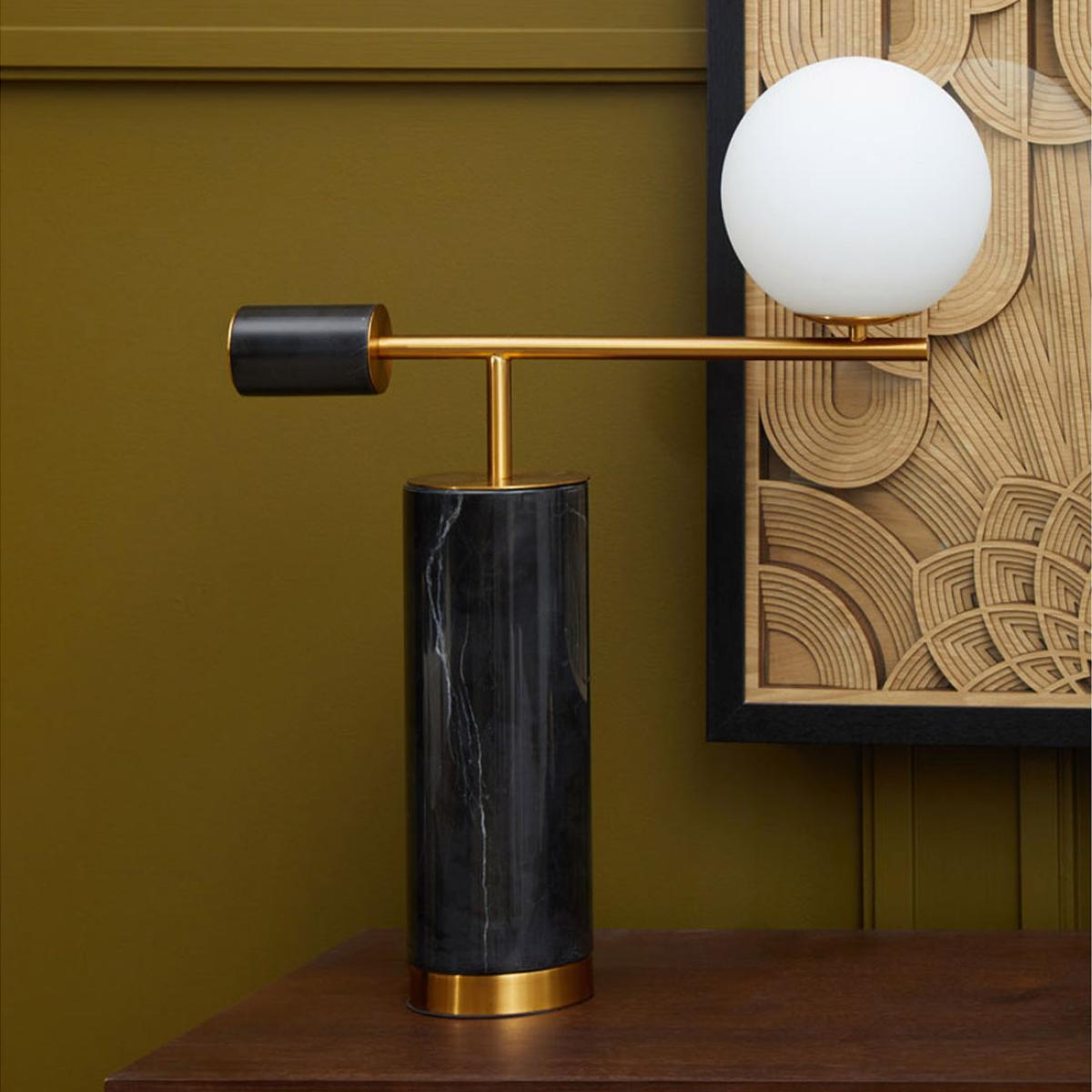 The Macy table lamp exhibits pure geometry with its clean line structure and sleek profile. The white glass globe-shaped shade is expertly attached to the adjustable stem that sits atop a cylindric. View More. The Macy table lamp exhibits pure geometry with its clean line structure and sleek profile. The white glass globe-shaped shade is expertly attached to the adjustable stem that sits atop a cylindrical black marble base.