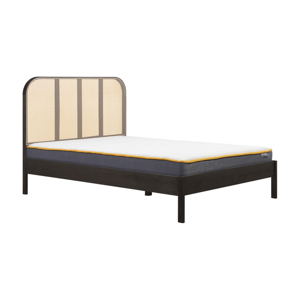 A distinctive design with a contemporary feel, the Maggie rattan bed frame is the centrepiece for a modern styled bedroom. The curved rattan headboard offers a contrast against the solid, smooth lines of the frame. This frame also has a sprung slatted base to give natural bounce, adjusting to where pressure is most exerted to provide greater comfort. Please note: Olivia's beds are only suitable for a UK standard size mattress. Dimensions: Double - H: 115 x W: 142 x D: 201 cm. Kingsize - H: 115 x W: 157 x D: 210 cm. Super Kingsize - H: 115 x W: 188 x D: 210 cm Materials: Oak Assembly Required: Yes Care Instructions: Never use silicon or wax based furniture polish as this will leave a residue behind on the product. Gently dust using a soft buffing cloth. Make sure spills are blotted away quickly to avoid lasting stains. To remove any marks use a clean, slightly damp cloth. Never use detergents on any wood surfaces. Always follow cleaning instructions provided in the assembly instructions