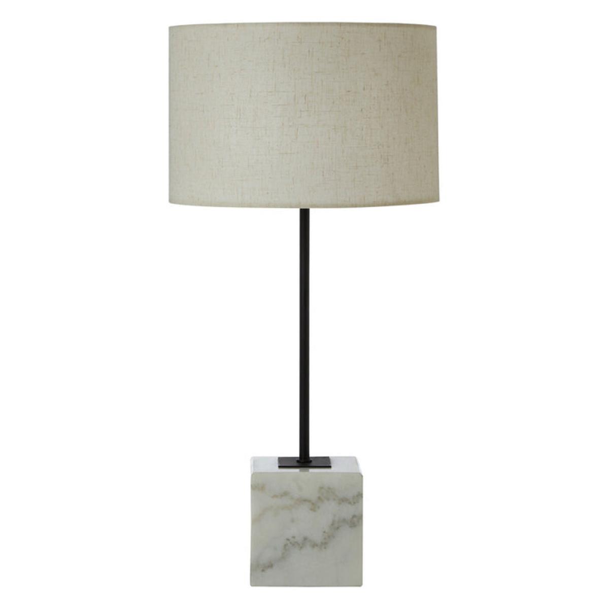 This interesting standing lamp will provide a wonderful modern touch to any living room, dining area or hallway. The base of this gorgeous piece by Olivia's has been created from white marble that. View More. This interesting standing lamp will provide a wonderful modern touch to any living room, dining area or hallway. The base of this gorgeous piece by Olivia's has been created from white marble that has a black seam running through it. This makes the lamp look sturdy and unique. The stand is offered in a complementing shade of solid black, and the lampshade features a plain fabric appearance in soft grey. The lampshade houses a single bulb that will create the perfect ambient or task lighting in your room. The muted tones will blend in well with any existing colour scheme in your home. This product is made from marble which is a natural stone. The beauty of natural materials is that they have an authentic and unique finish which may result in slight variation in the vein, pattern and colour from the image shown.