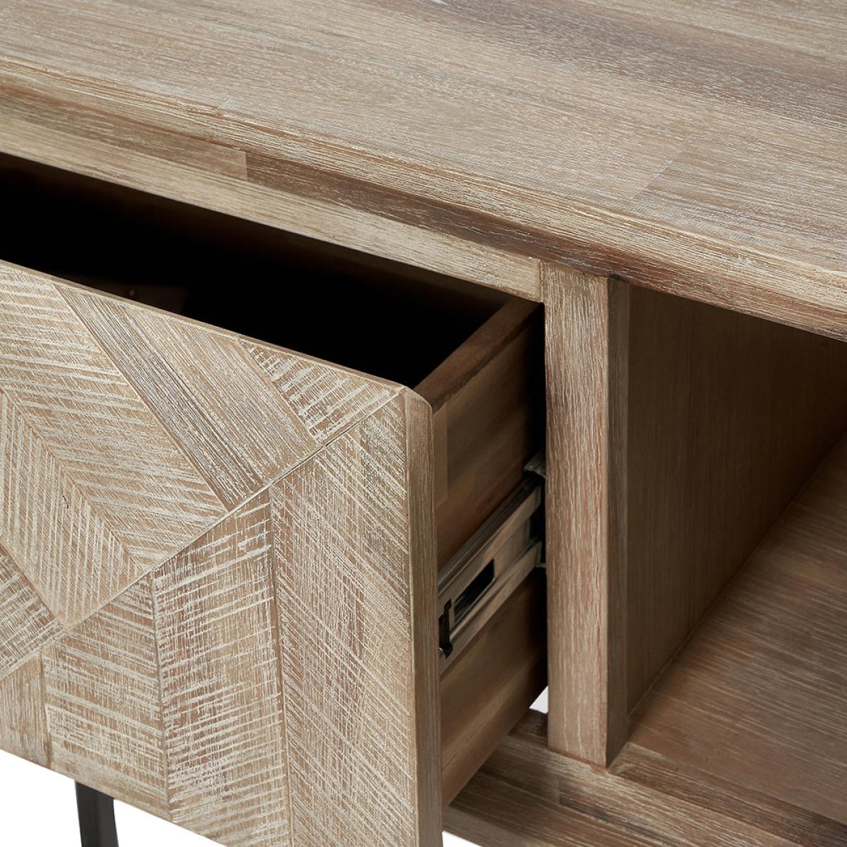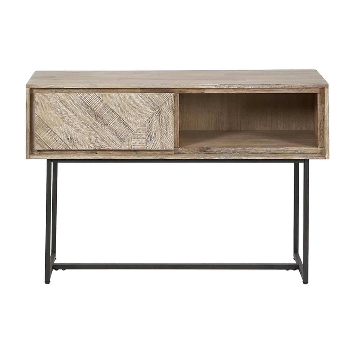 With one drawer, one open niche and ample surface space, this console table has ample storage space. Whether it be placed in an entryway, landing or living space, this Scandi style console table complete with a unique textured, wood panelled finish, is the perfect addition to any space. Complete the look with other pieces from the Marca range; dining table, bar cabinet, coffee table, sideboard and desk.