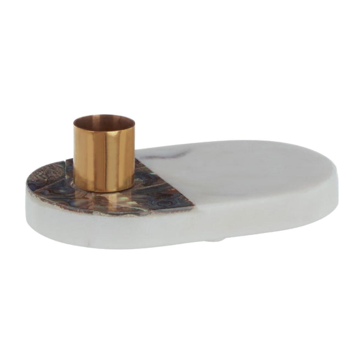 Liv by Olivia’s brings you many unique and hidden treasure pieces that are simply waiting to create a strong individual aesthetic in your home, with Mary sitting perfectly within this look. Her smooth, tactile white marble base has been expertly shaped by hand and is lovingly accented with the iridescent, shimmering paua shell that encompasses the base of the gold-plated candle holder. Her combination of purity and luxury in the perfect balance of stone, sea and metal makes her a truly desirable candle holder and ideal for warm wooden surfaces or glass and stone tabletops set amongst golden metal frames. *Moot Trading Ltd is not a lender and acts only as an introducer. The credit product is provided by Klarna Bank AB (publ). Credit is only available to permanent UK residents aged 18 and over, subject to status. Terms and conditions apply. Please note that the following products are not regulated by the FCA: Pay in 30 days and Pay in 3 instalments. Read More.