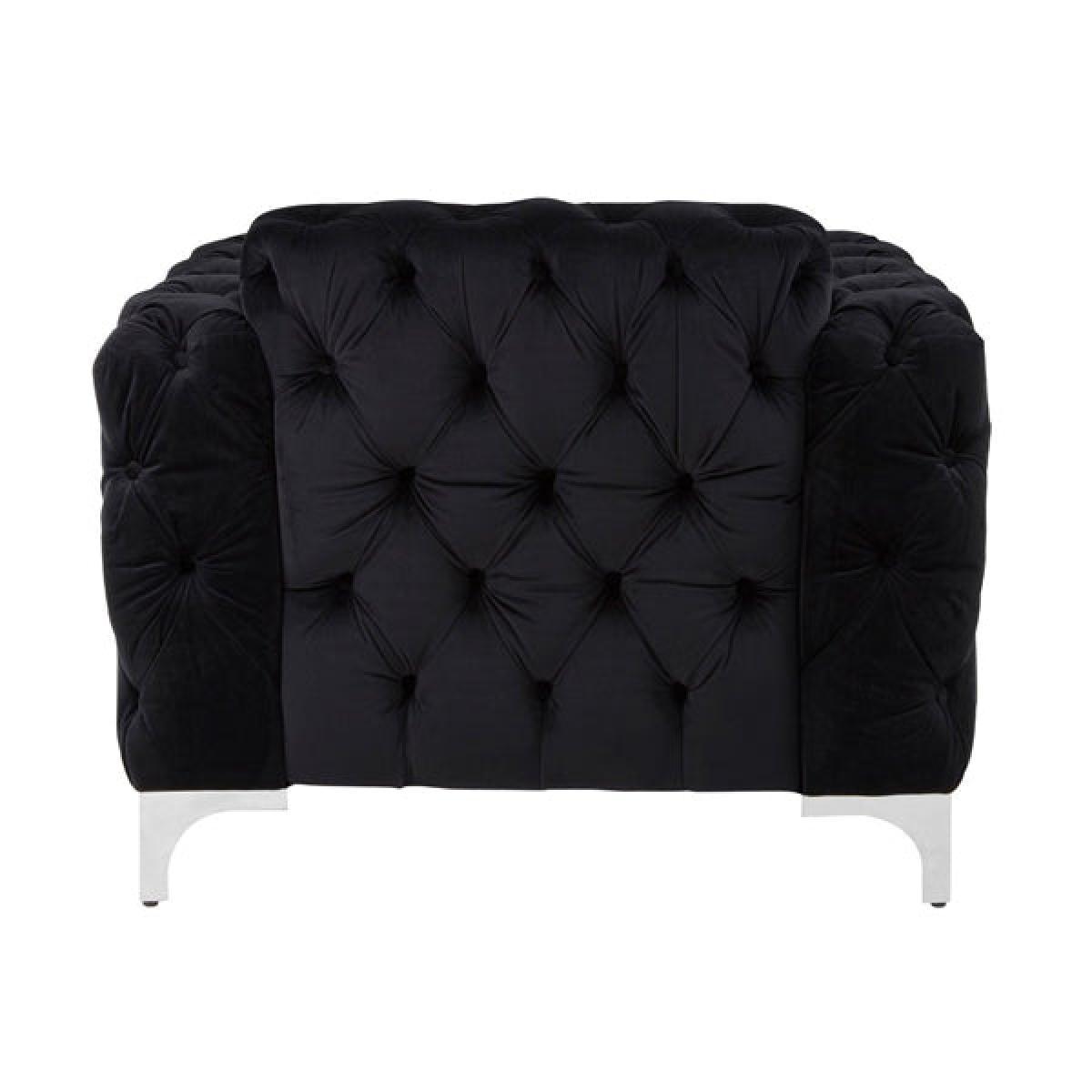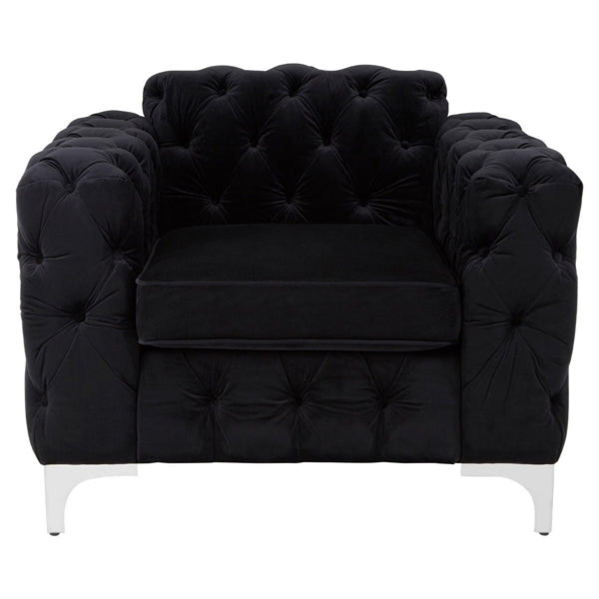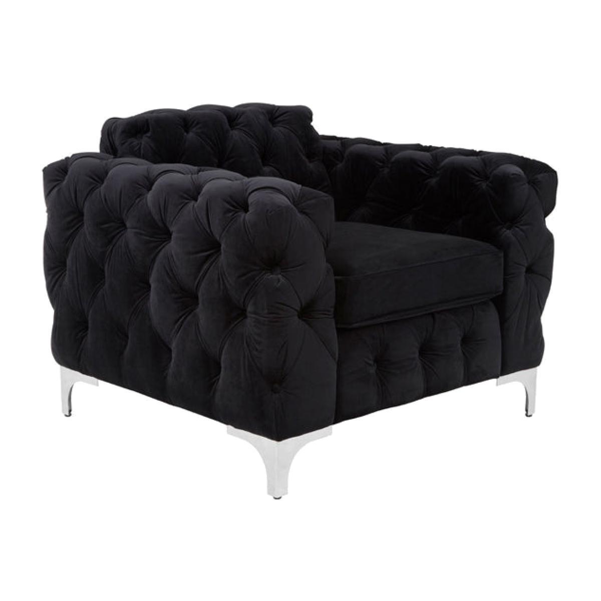 This stunning quilted black velvet armchair is ready to bring effortless glamour and comfort to any home. The Mary Chesterfield Armchair, finished with silver base and feet, will complement darker interiors perfectly or make lighter colour schemes pop. With dimensions of height 82cm, width 98cm and depth 90cm, she will integrate into any living room or study, providing much-needed extra lounging space. Alternatively, you can place her in your favourite reading spot and sink into that latest book in style. She could also make a great addition to a bedroom or dressing room. The possibilities are endless with this exquisite piece. *Moot Trading Ltd is not a lender and acts only as an introducer. The credit product is provided by Klarna Bank AB (publ). Credit is only available to permanent UK residents aged 18 and over, subject to status. Terms and conditions apply. Please note that the following products are not regulated by the FCA: Pay in 30 days and Pay in 3 instalments. Read More.