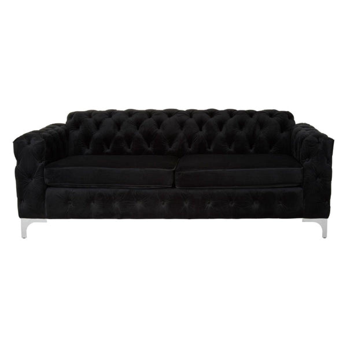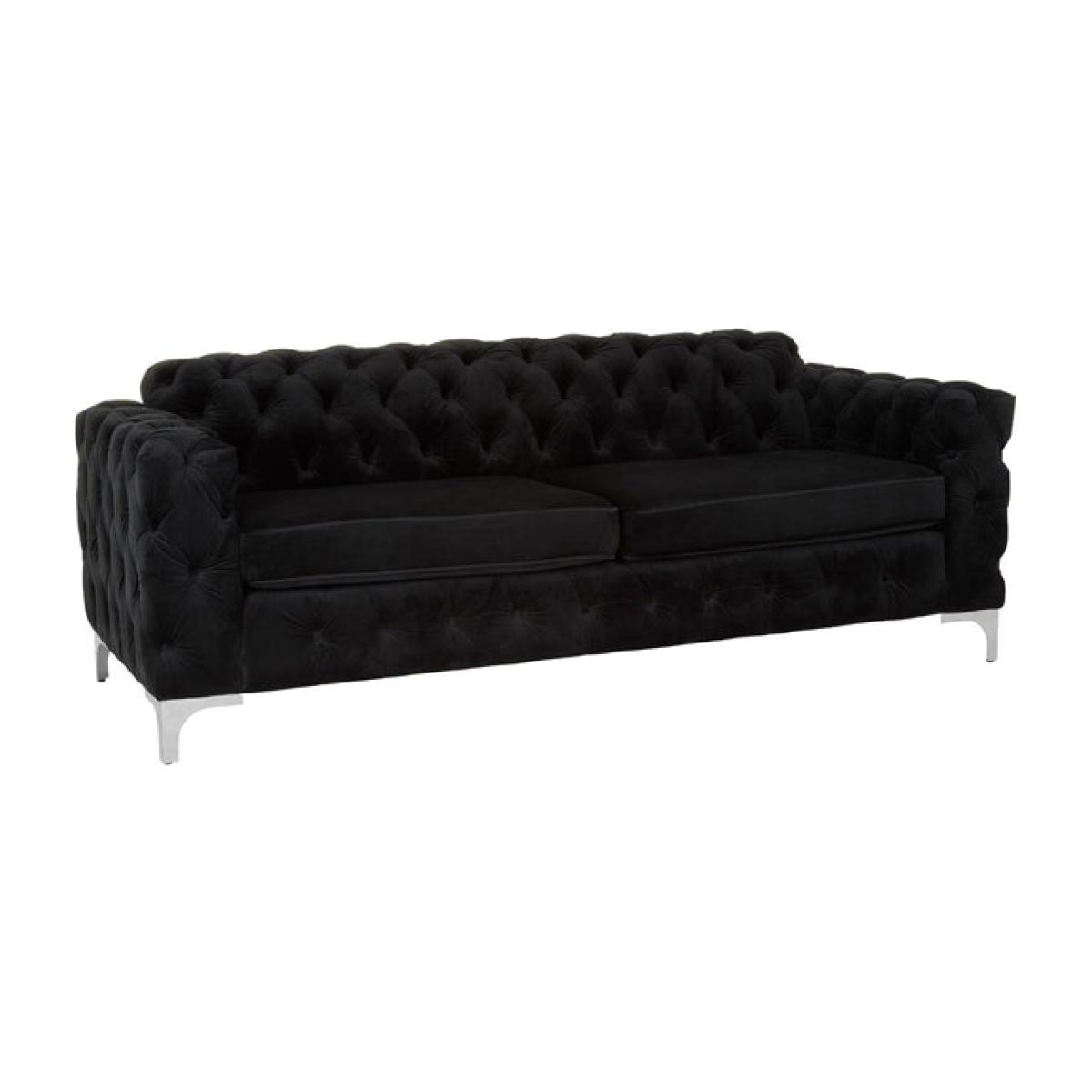 A beautiful focal point that displays the quintessential Chesterfield deep button tufting, you will love sinking into the Liv by Olivia's Mary Chesterfield sofa. Her classic good looks create an ambience of vintage elegance, whilst her plush black upholstery and chic metallic legs make a statement that is pure modern luxury. The ideal centrepiece for a stylish contemporary living area, Mary’s black fabric finish is the perfect foil for both bold and bright colour schemes and monochrome minimalism. Measuring 77cm in height, 205cm wide and 90cm deep, Mary offers ample room for your entertaining guests or stretching out in comfort. *Moot Trading Ltd is not a lender and acts only as an introducer. The credit product is provided by Klarna Bank AB (publ). Credit is only available to permanent UK residents aged 18 and over, subject to status. Terms and conditions apply. Please note that the following products are not regulated by the FCA: Pay in 30 days and Pay in 3 instalments. Read More.