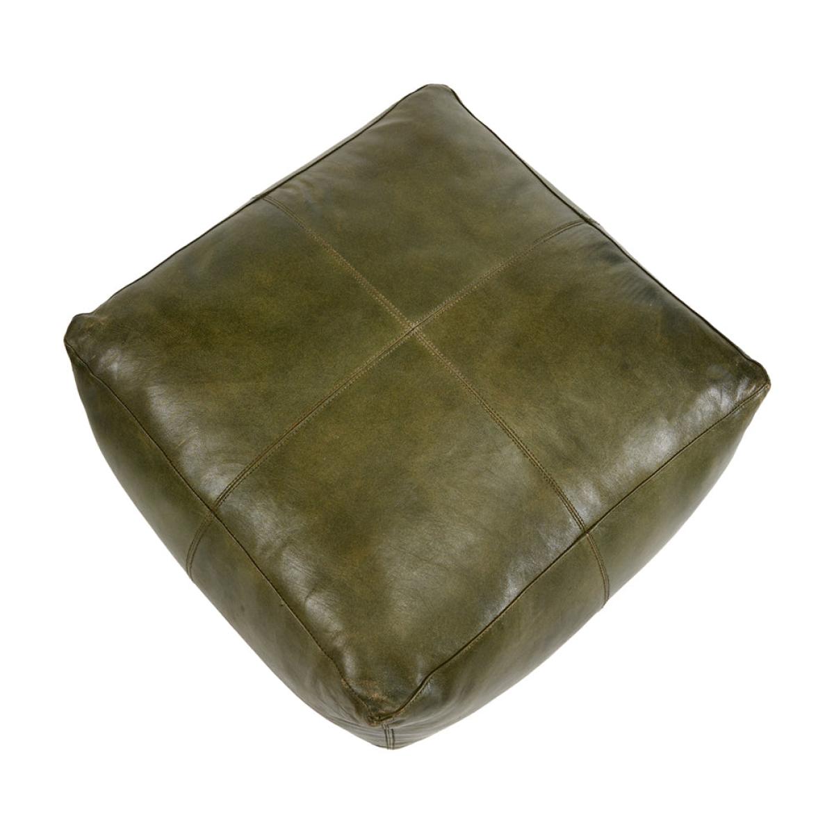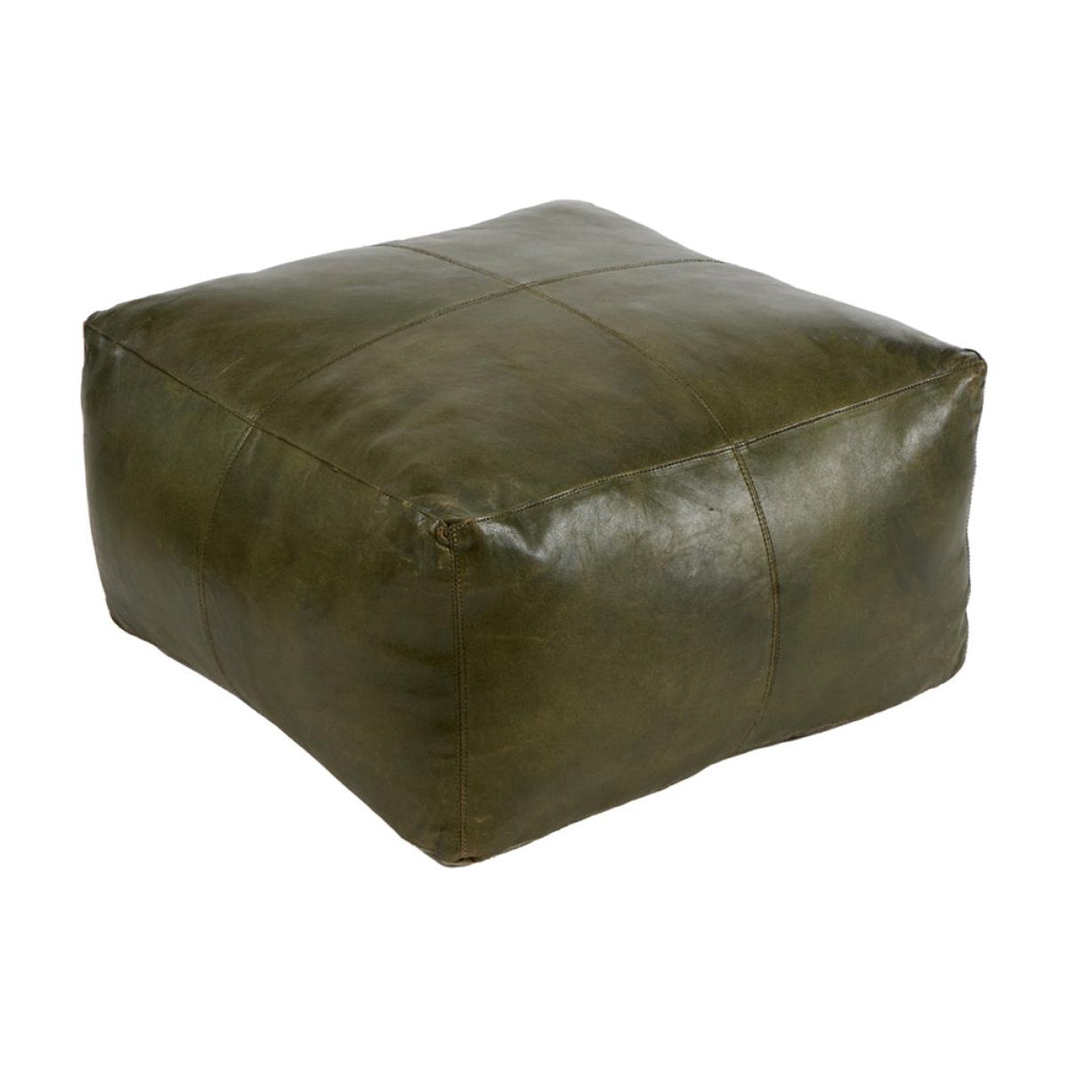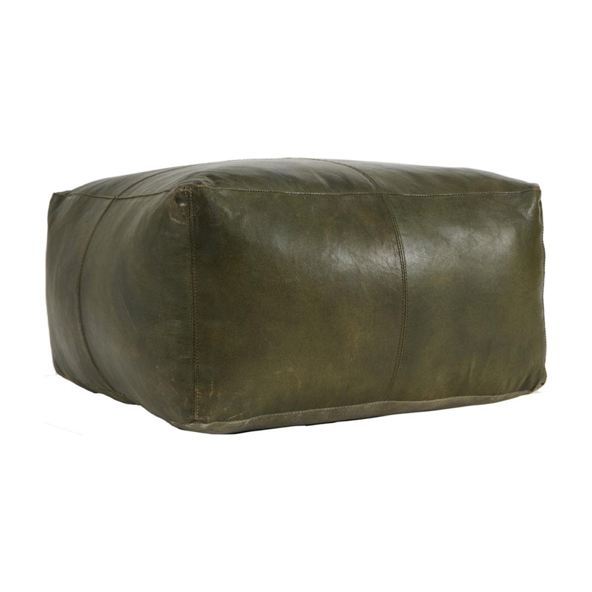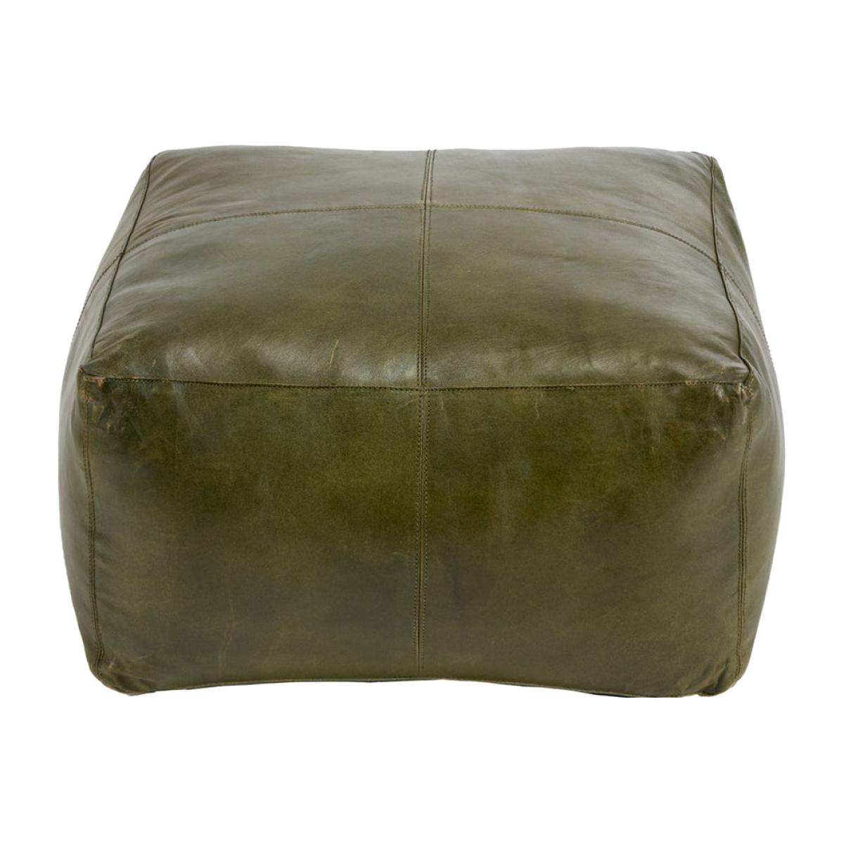 Olivia's Mateos Leather Square Pouffe in Sage Green