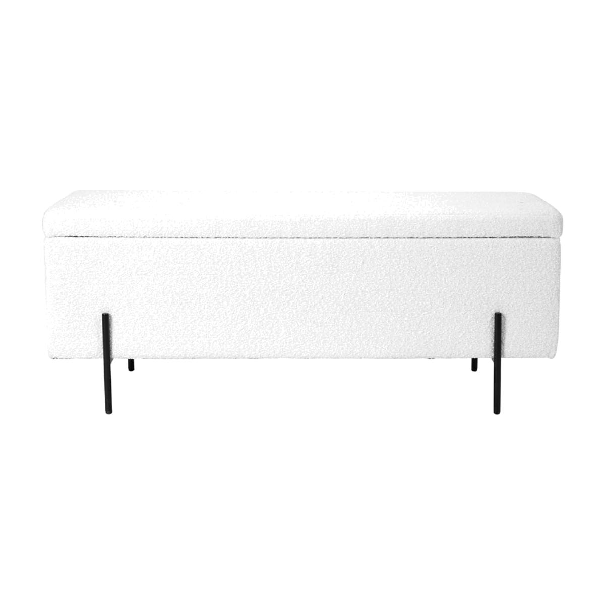 Practical and stylish, the Maxie Bouclé Storage Bench with contrasting black legs, is a multifunctional but beautiful storage solution. Perfect as storage in the hallway, extra seating around the coffee table or end of the bed in the bedroom.