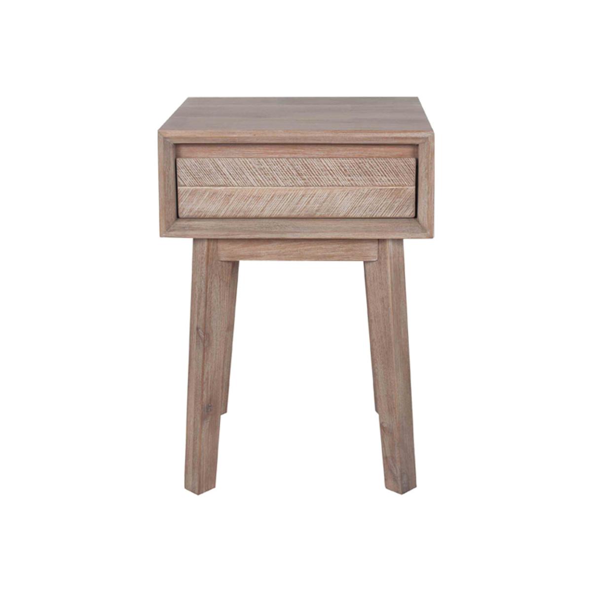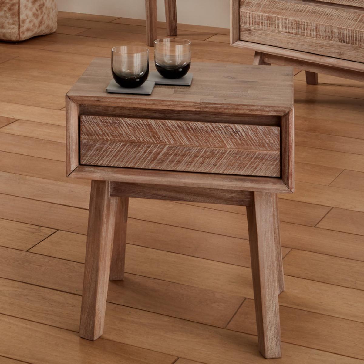 Look no further for a Scandi style with an artisan twist. This one drawer, sand-washed acacia wood unit from the Kalmar Collection would rejuvenate any interior with its clean lines and modern finish. Complement this look with the rest of the range of seven pieces, which include the three drawer bedside unit, four drawers tallboy, three drawer unit, three drawers and three-door side sideboard unit, a console unit and two drawer desk.