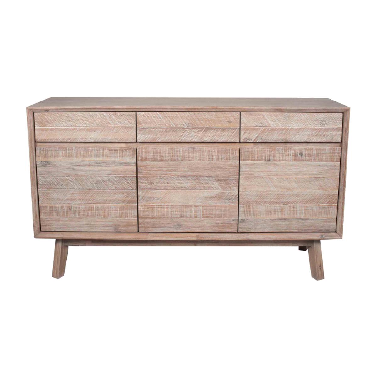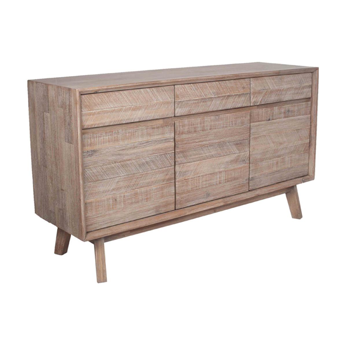 Look no further for a Scandi style with an artisan twist! This three-drawer and three doors, sand-washed acacia wood unit from the Melville Collection would rejuvenate any interior with its clean-lined and modern finish. Complement this look with the rest of the range of seven pieces, which include the one drawer bedside unit, three drawer bedside unit, four drawers tallboy, three drawer unit, a console unit and two drawer desk.