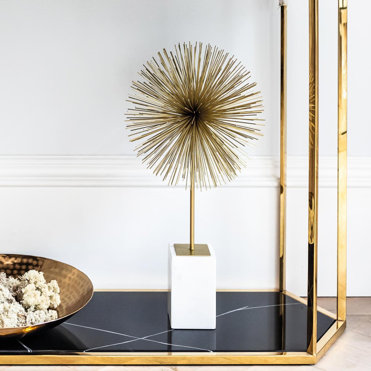 If you are looking for something a little different to make an artistic statement in your home, consider this Olivia's Mila gold starburst sculpture. This beautiful sculpture is both unique and highly eye-catching due to its vibrant and creative starburst style. The golden colour scheme of the starburst element of the sculpture combines beautifully with the white marble base to add to the already contemporary aesthetic. Place the Mila sculpture in your living room or hallway to immediately show your individuality! This Olivia's Mila gold starburst sculpture is also well-sized with dimensions of 64cm high, 33cm wide and 33cm deep. *Moot Trading Ltd is not a lender and acts only as an introducer. The credit product is provided by Klarna Bank AB (publ). Credit is only available to permanent UK residents aged 18 and over, subject to status. Terms and conditions apply. Please note that the following products are not regulated by the FCA: Pay in 30 days and Pay in 3 instalments. Read More.