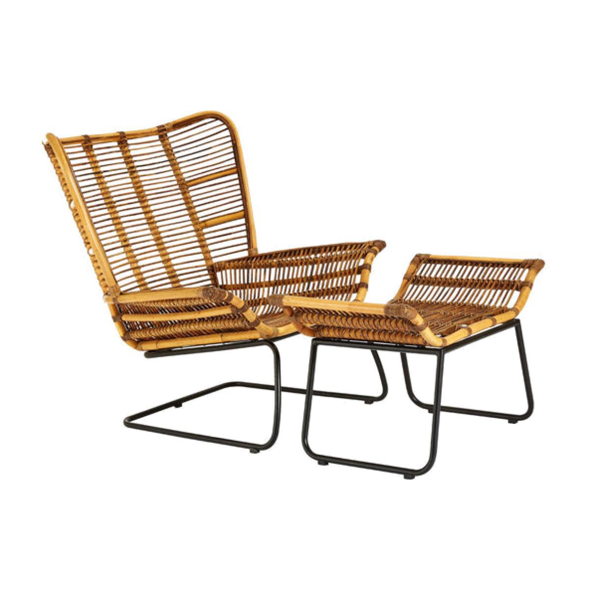 Relax in comfort and style with this stunning Milly chair and matching footstool, made from an iron framework with a wicker and bamboo structure. The chair has a high, winged back and armrests, and the matching footstool has elevated sides to carry on the design style. The metal framework that the chair rests on slopes gently backward and is supported on two legs, making this the perfect comfortable chair to sit back and relax in, with your feet resting on the footstool. It’s a versatile piece that looks great as it is, or you can add a touch of colour with a scatter cushion. *Moot Trading Ltd is not a lender and acts only as an introducer. The credit product is provided by Klarna Bank AB (publ). Credit is only available to permanent UK residents aged 18 and over, subject to status. Terms and conditions apply. Please note that the following products are not regulated by the FCA: Pay in 30 days and Pay in 3 instalments. Read More.